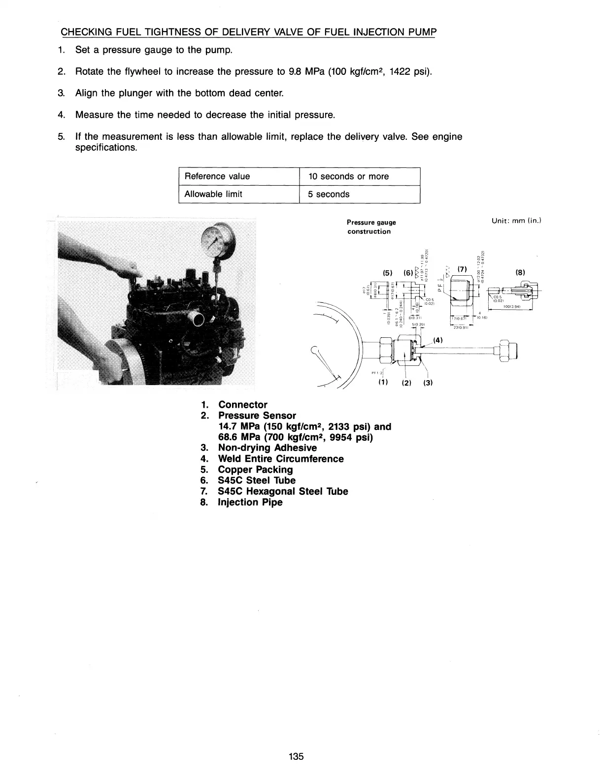 If the measurement is less than allowable limit, replace the delivery valve. See engine