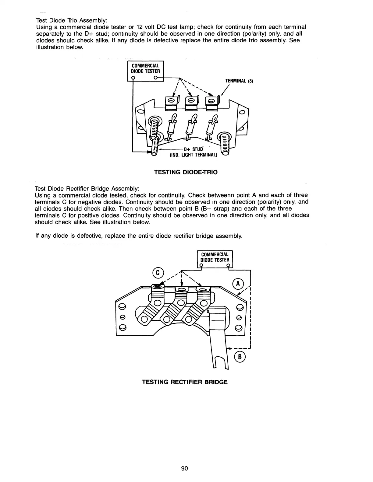diodes should check alike. If any diode is defective replace the entire diode trio assembly. See