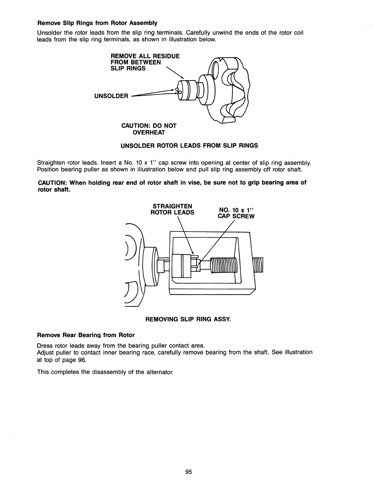 the rotor leads from the slip ring terminals. Carefully unwind the ends of the rotor coil