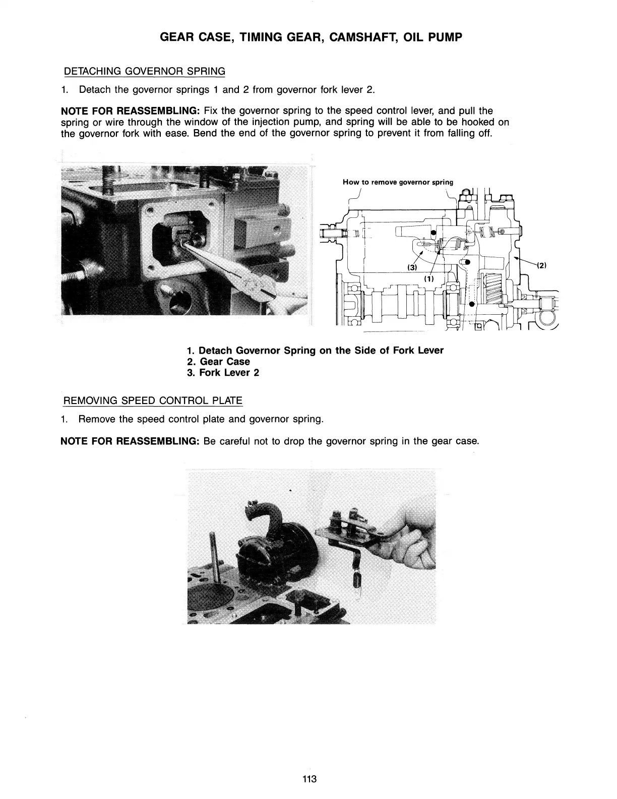 Remove the speed control plate and governor spring.