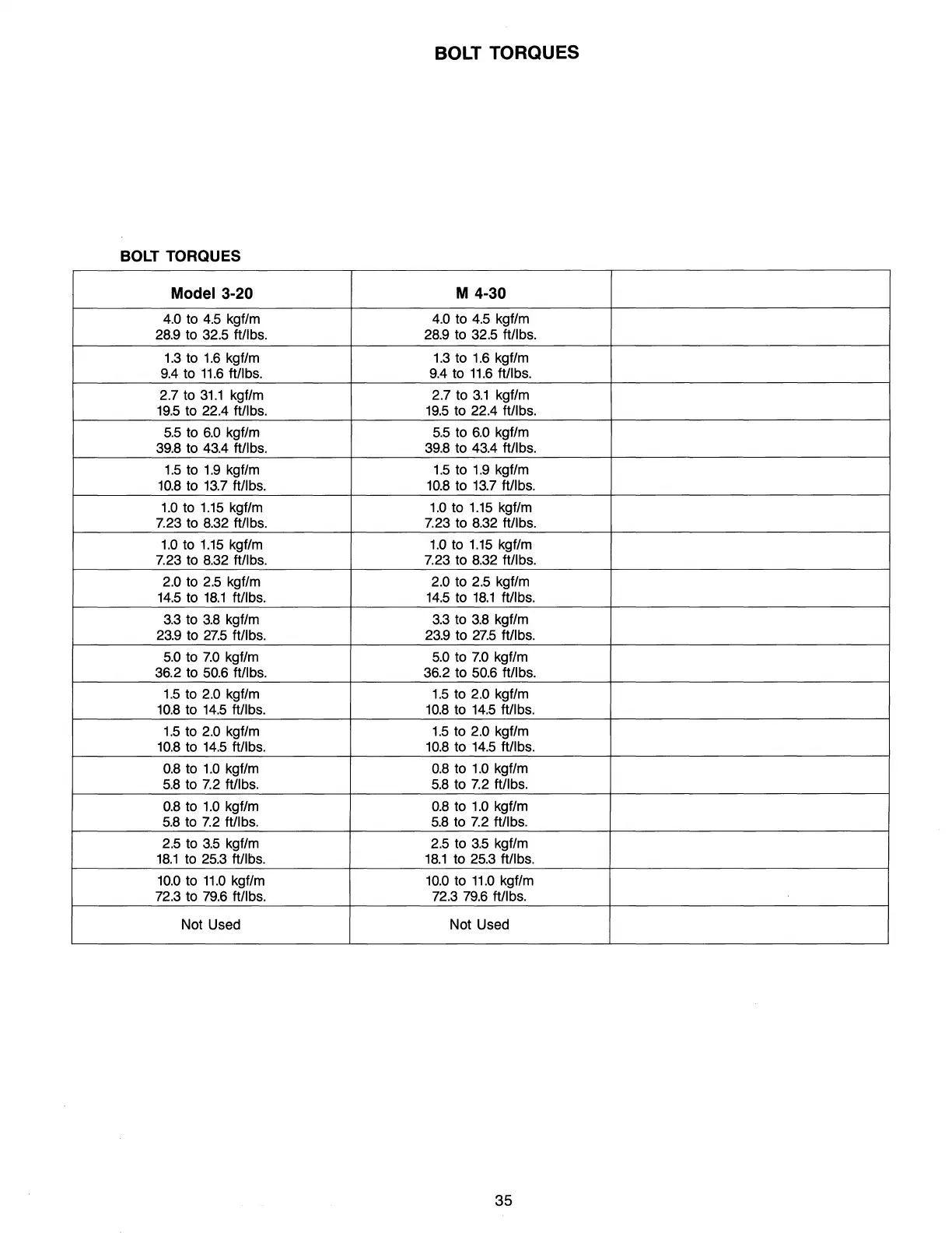 Universal M-18 - Bolt Torques; Tightening Bolts of Important Parts