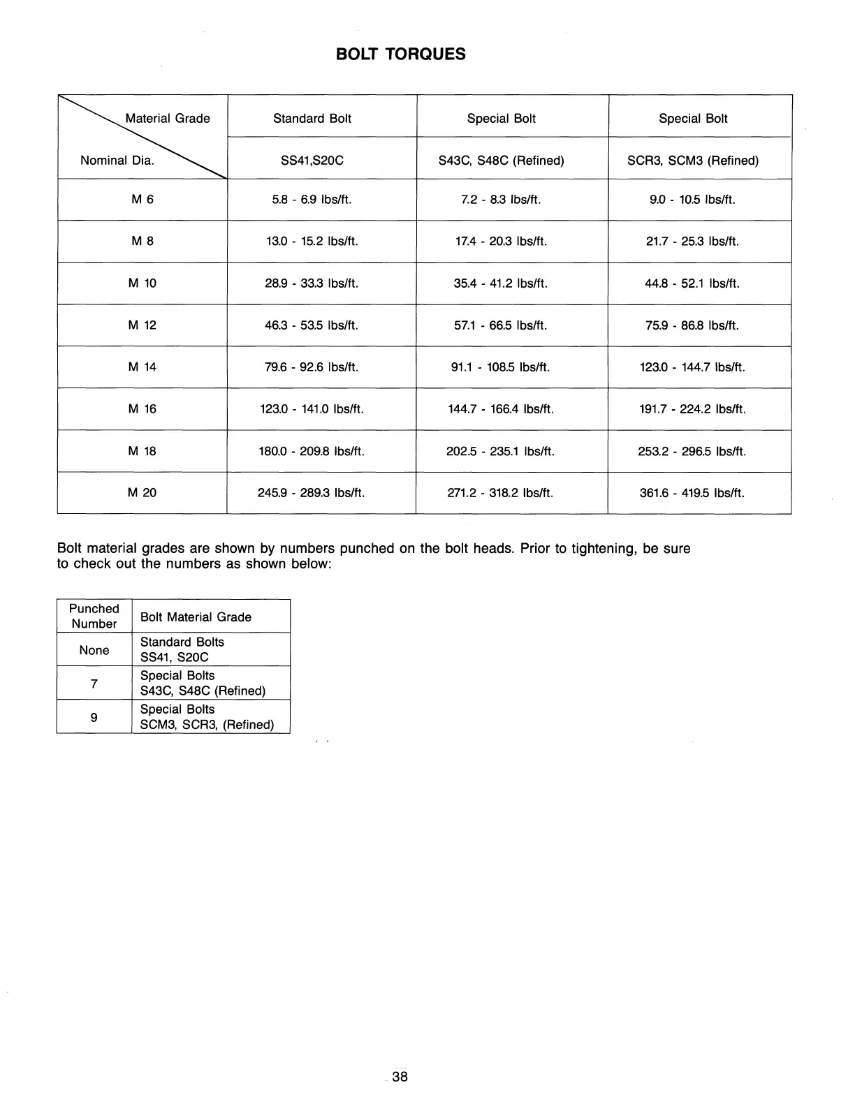 Bolt material grades are shown by numbers punched on the bolt heads. Prior to tightening,