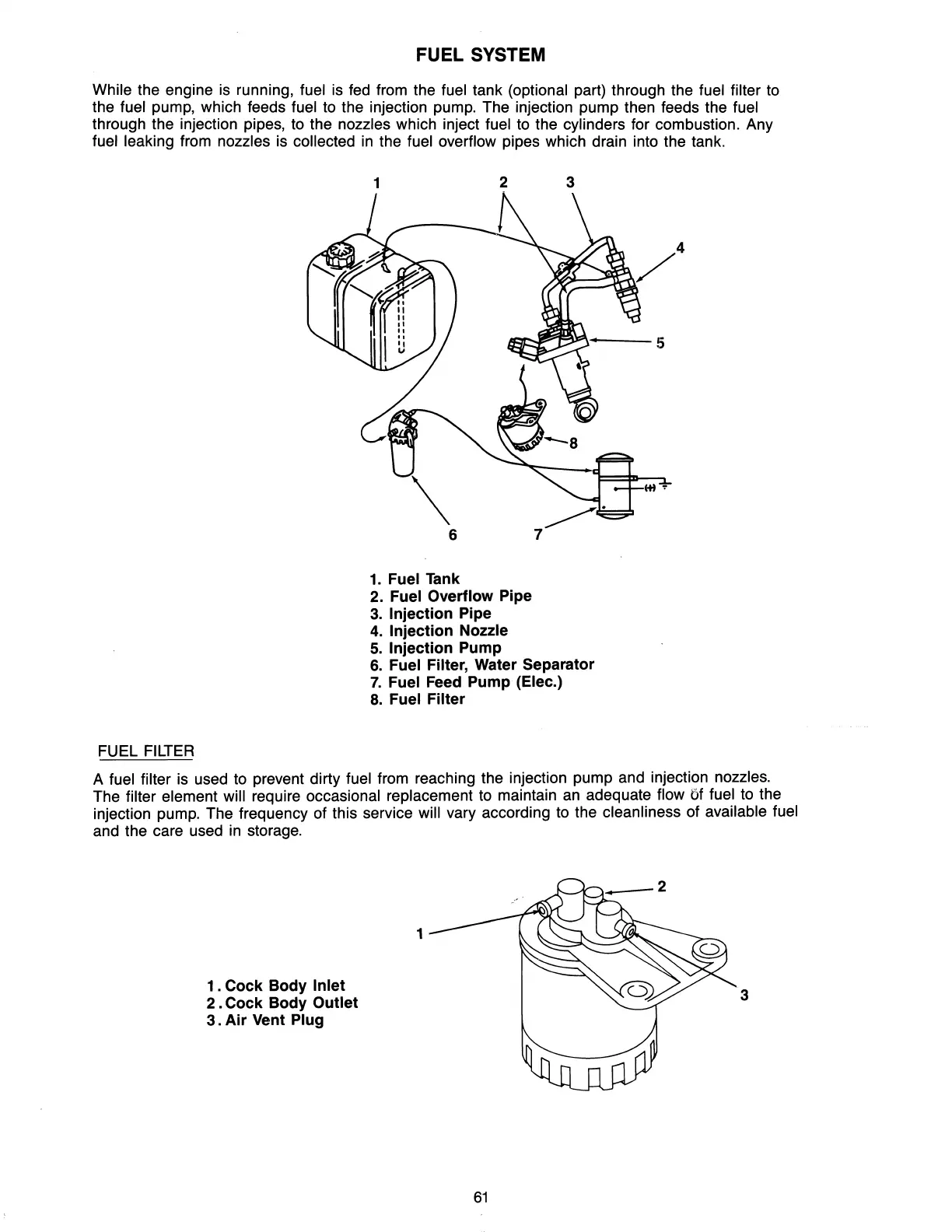 the fuel pump, which feeds fuel to the injection pump. The injection pump then feeds the fuel