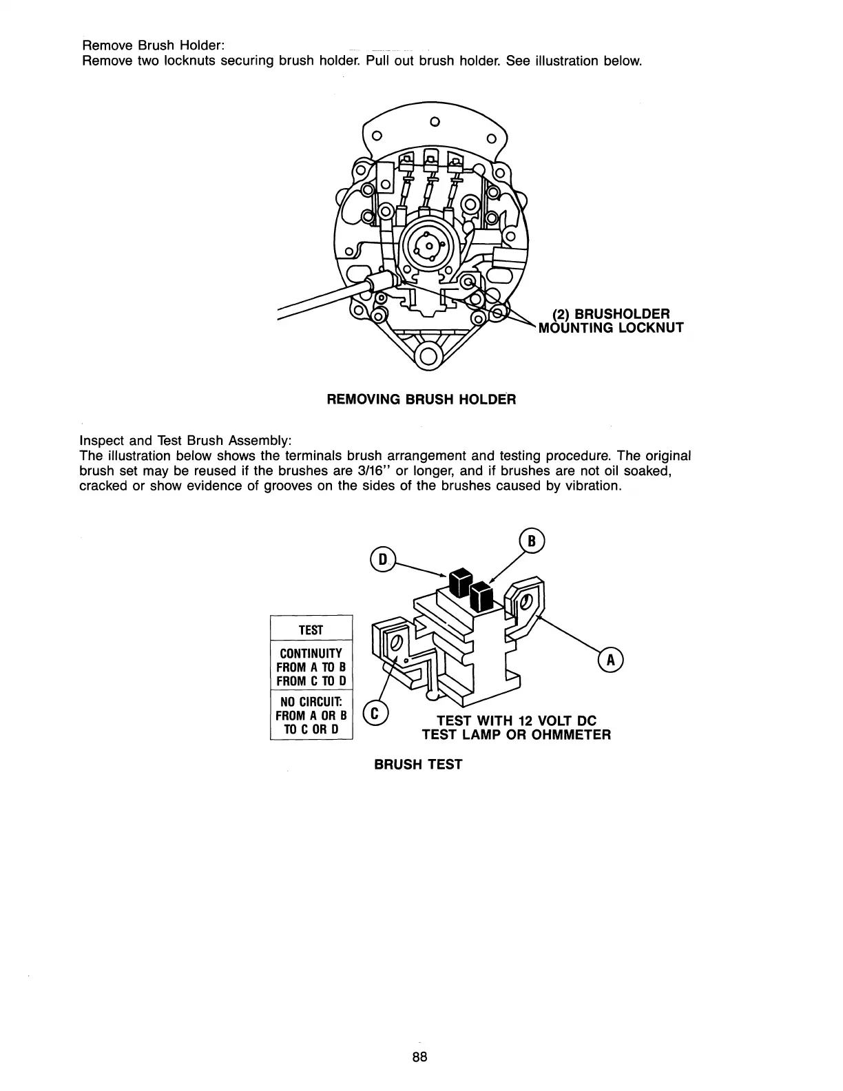 The illustration below shows the terminals brush arrangement and testing procedure. The original