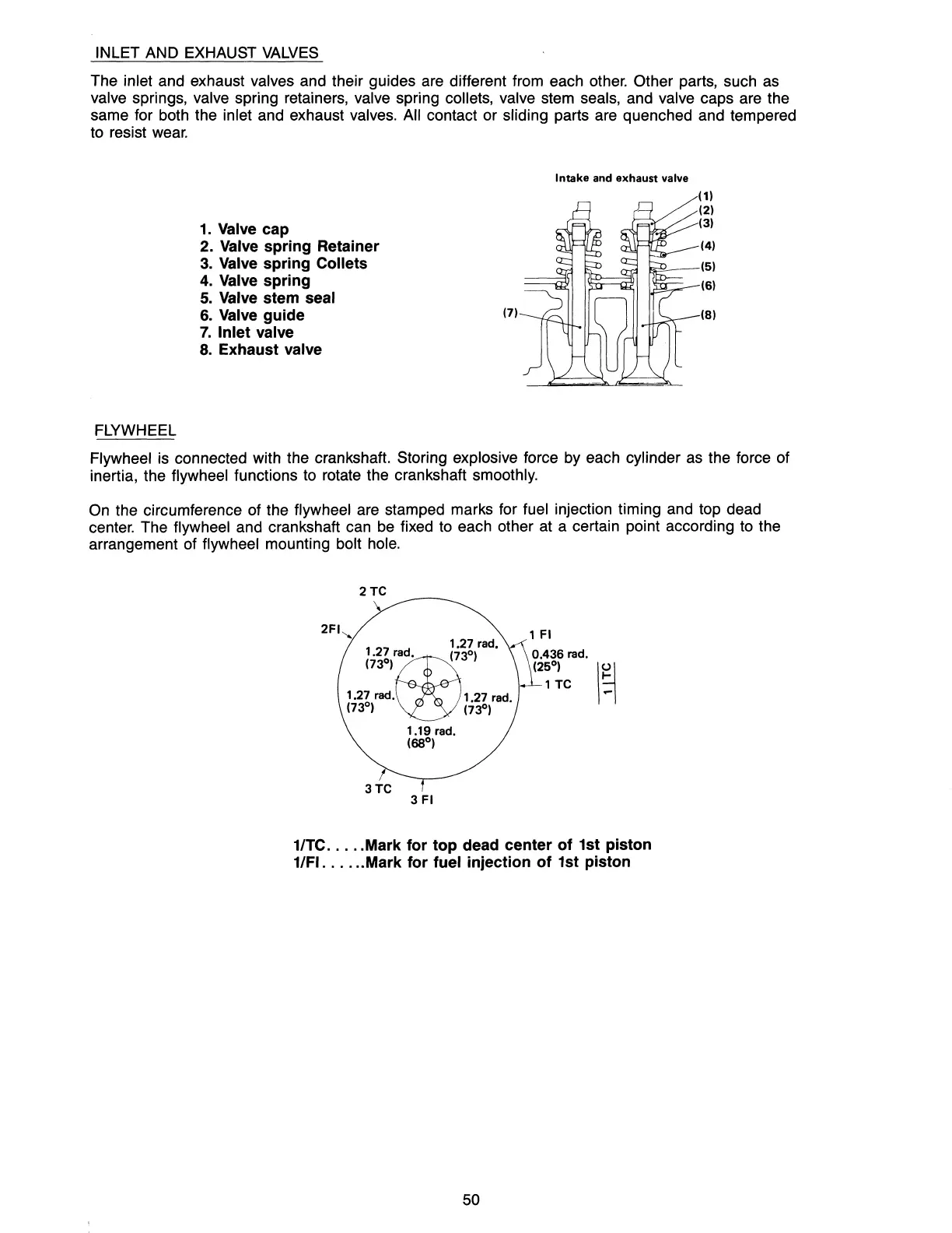 the circumference of the flywheel are stamped marks for fuel injection timing and top dead