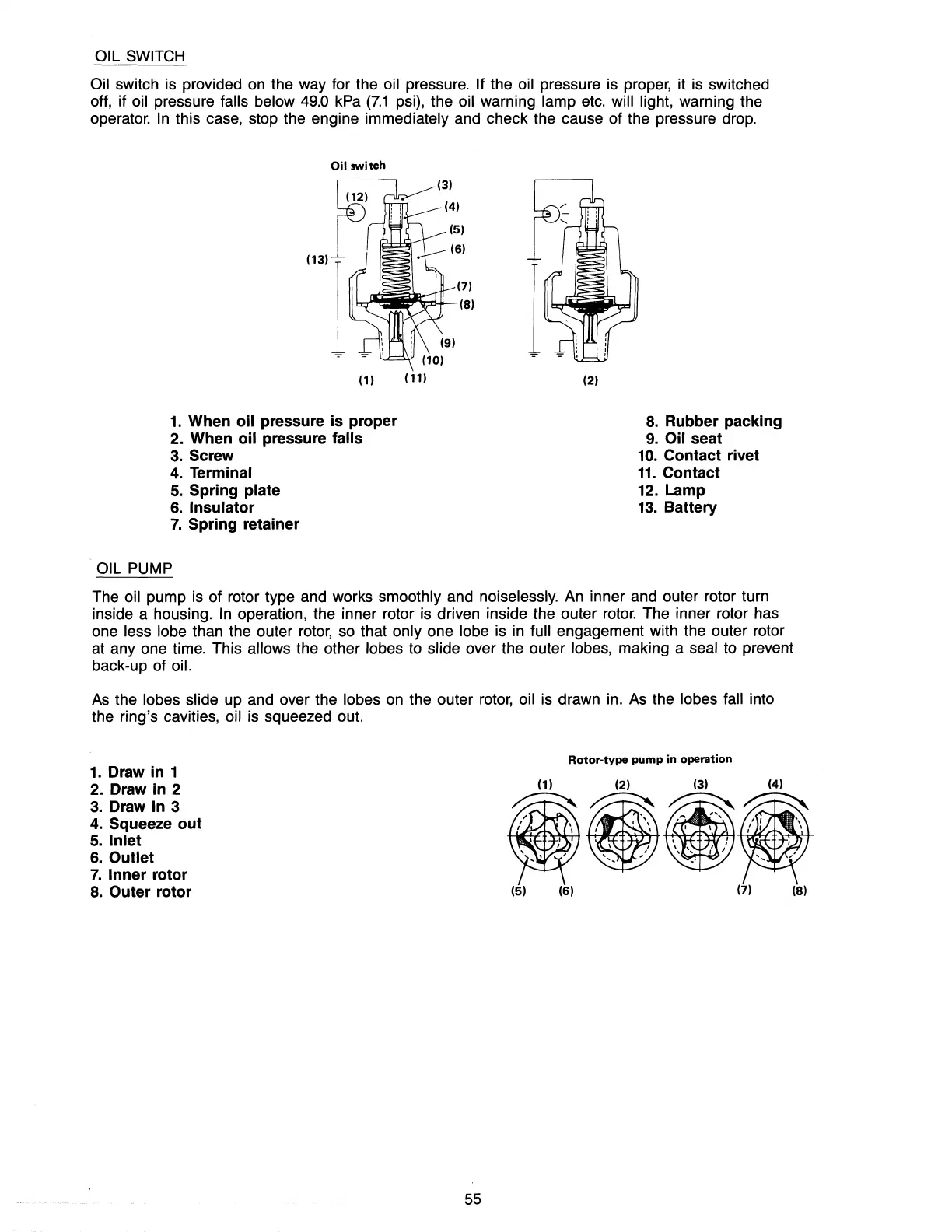 psi), the oil warning lamp