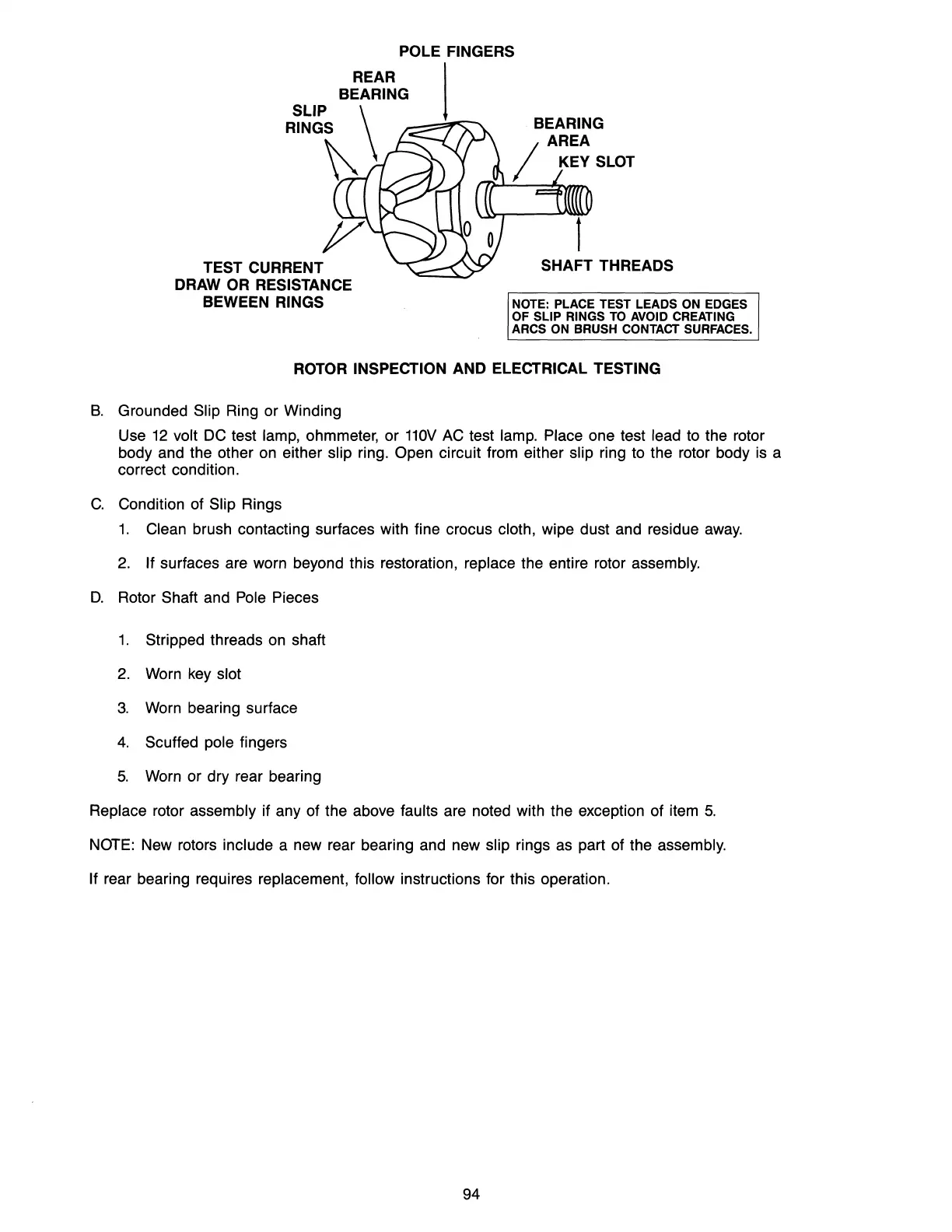 Replace rotor assembly if any of the above faults are noted with the exception of item