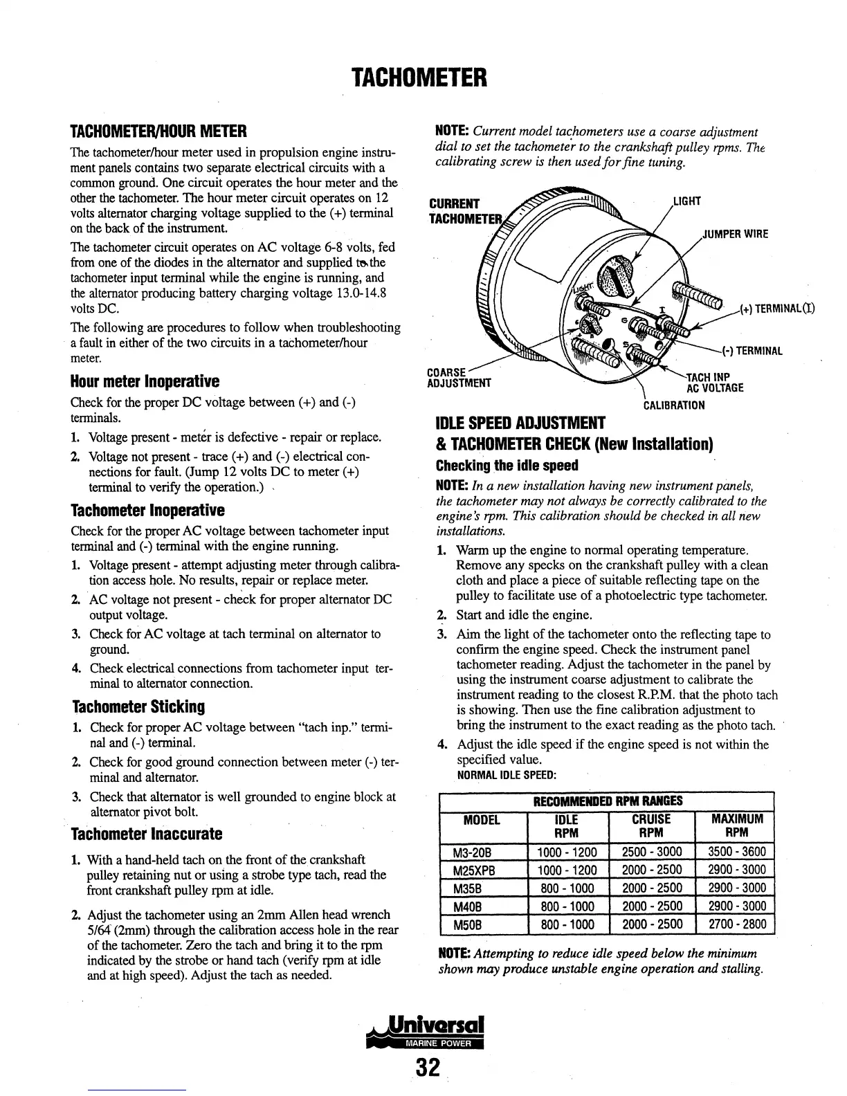 tachometer reading. Adjust the tachometer in the panel