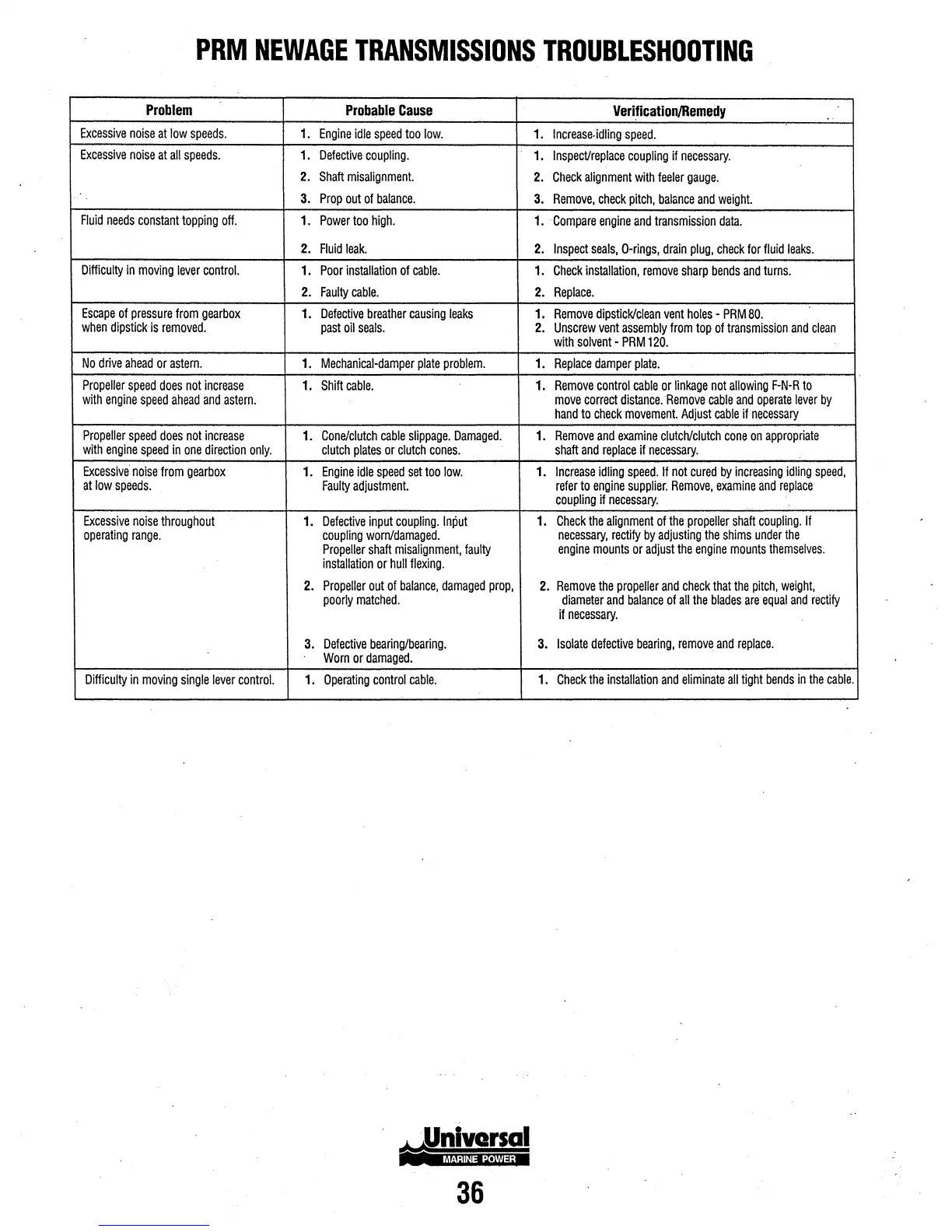 Universal M-25XPB(C) - PRM TRANSMISSION TROUBLESHOOTING; NOISE AND SHIFTING ISSUES; SPEED AND DRIVE PROBLEMS