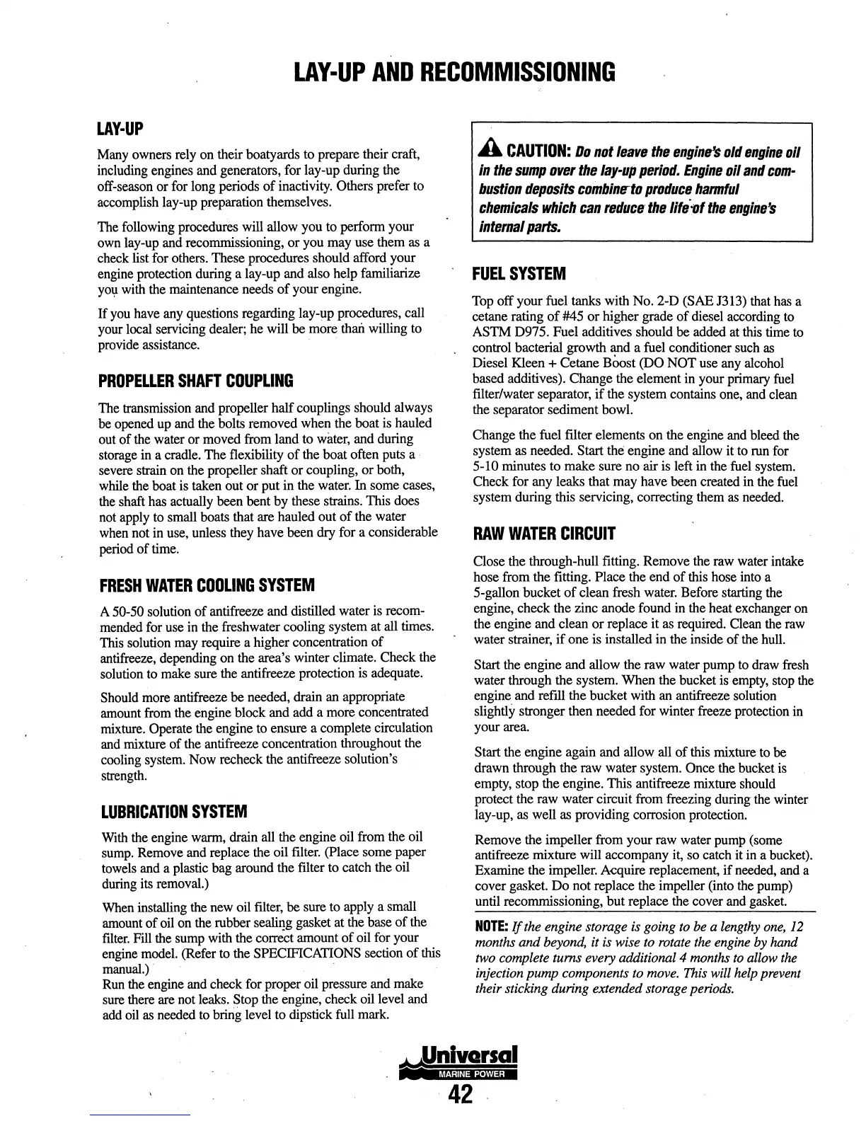 including engines and generators, for lay-up during the