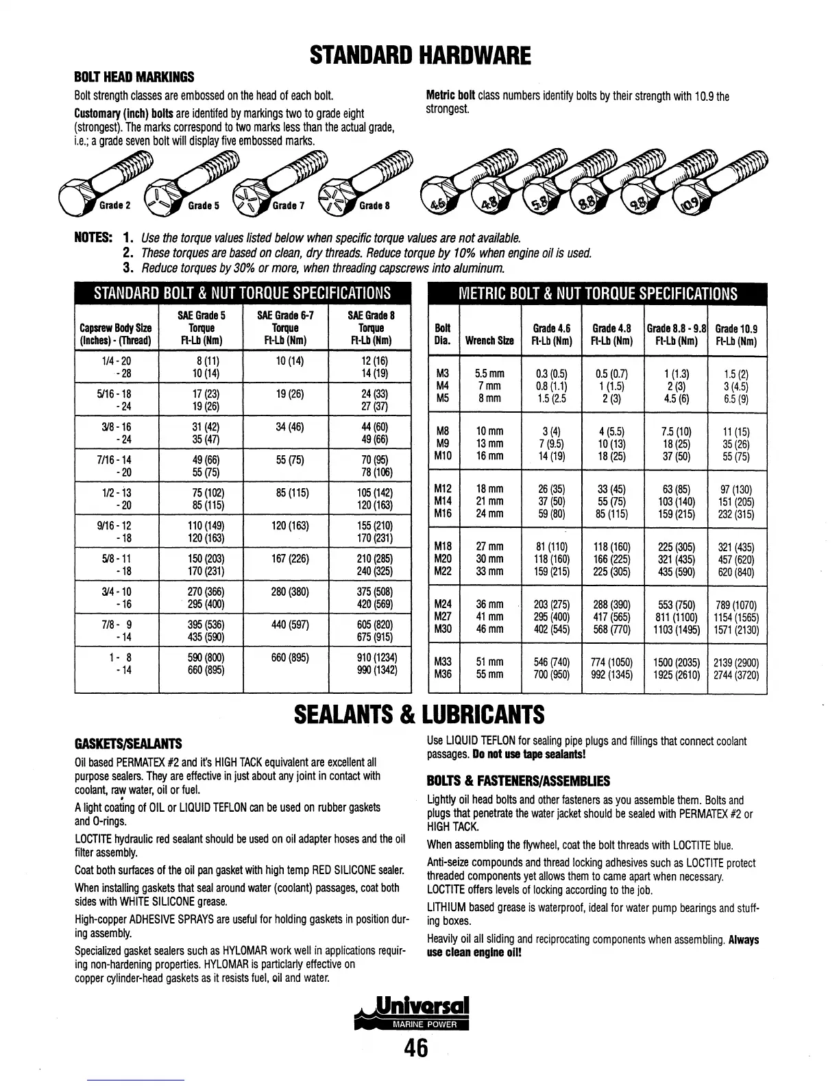 Universal M-25XPB(C) - HARDWARE, TORQUE, AND SEALANTS; BOLT MARKINGS AND TORQUE SPECS; GASKETS, SEALANTS, AND LUBRICANTS