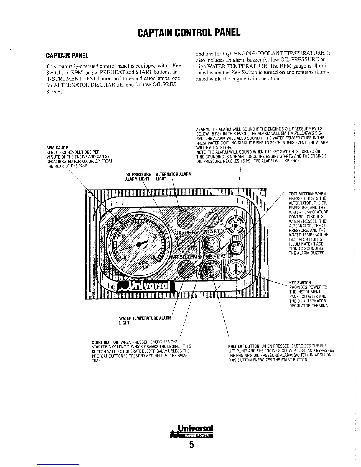 Switch, an RPM gauge, PREHEAT and START buttons,