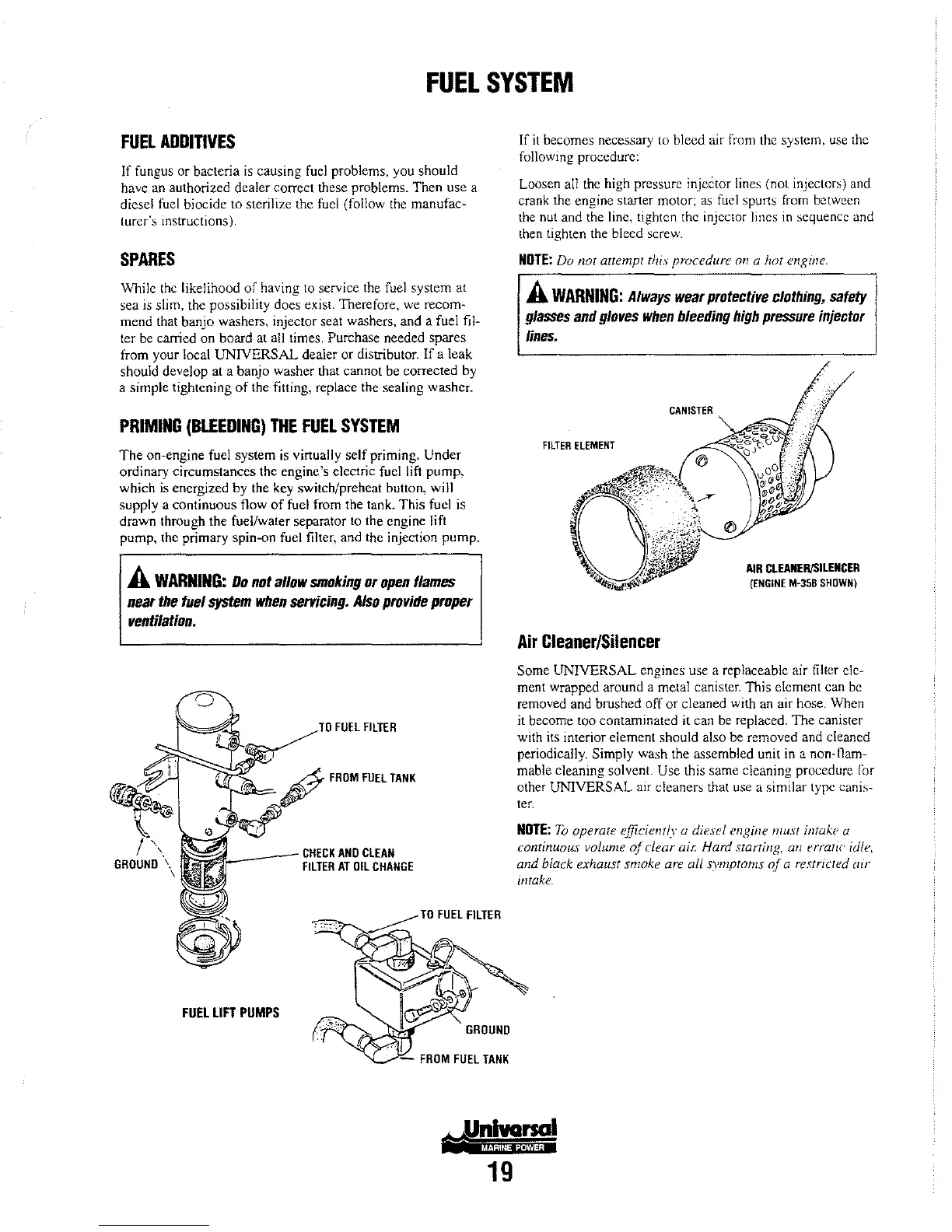 drawn through the fuel/water separator to the engine lift