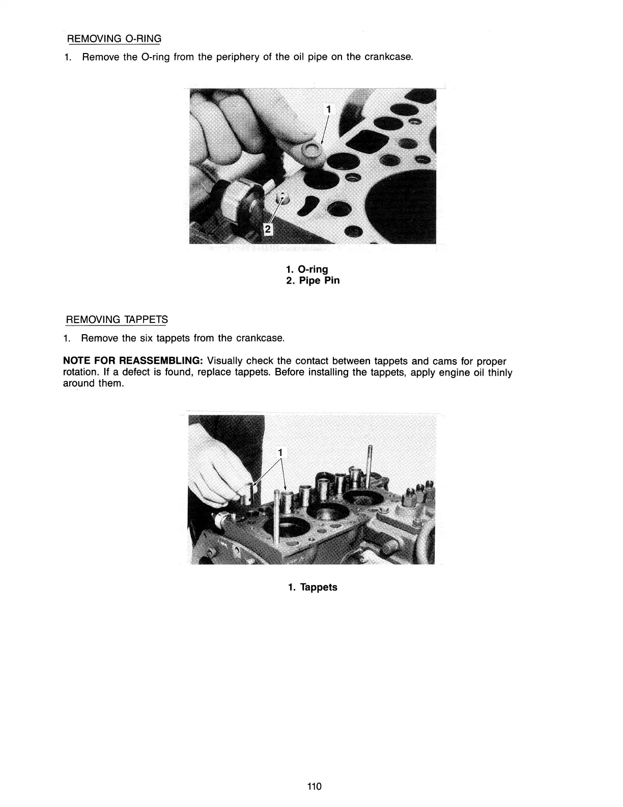 NOTE FOR REASSEMBLING: Visually check the contact between tappets and cams for proper