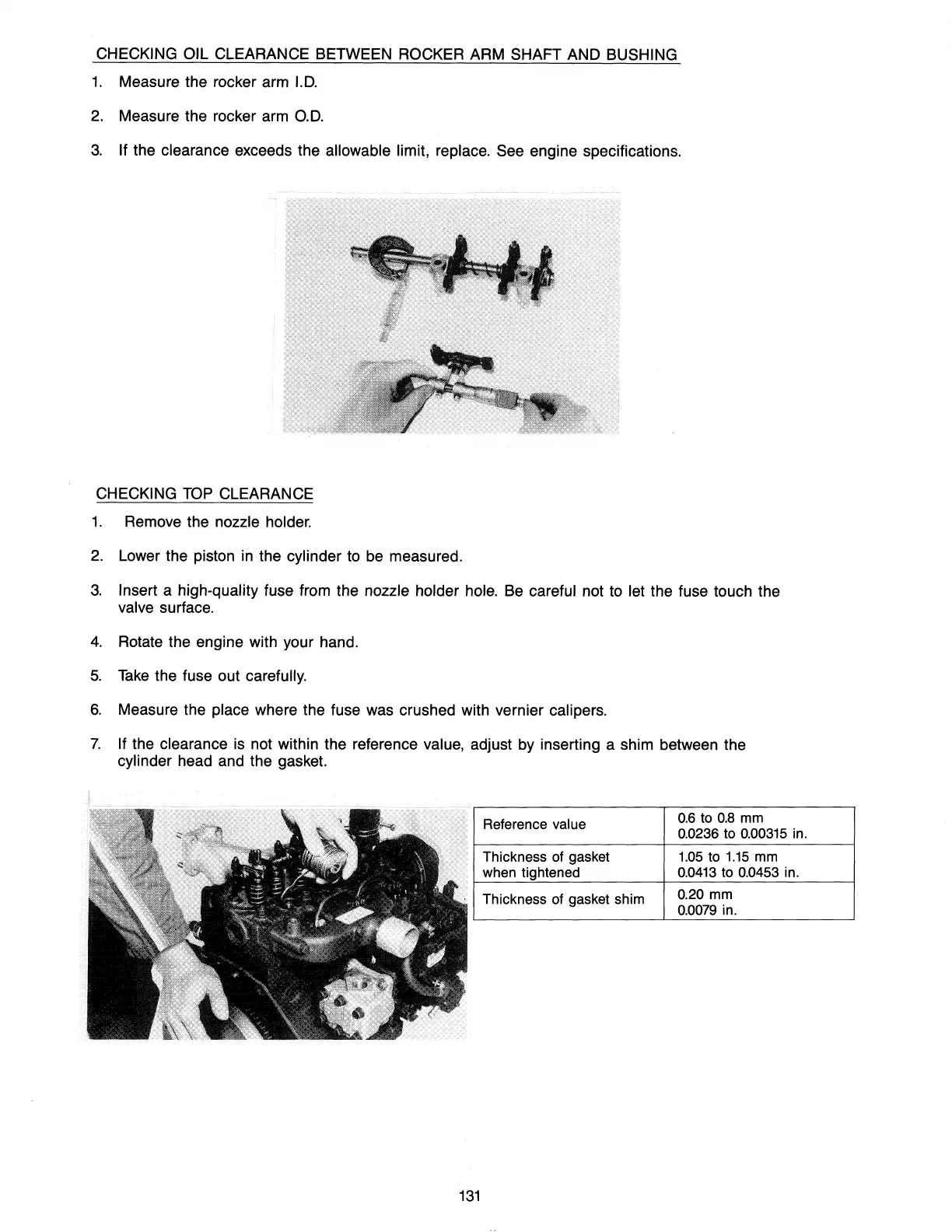 If the clearance exceeds the allowable limit, replace. See engine specifications.