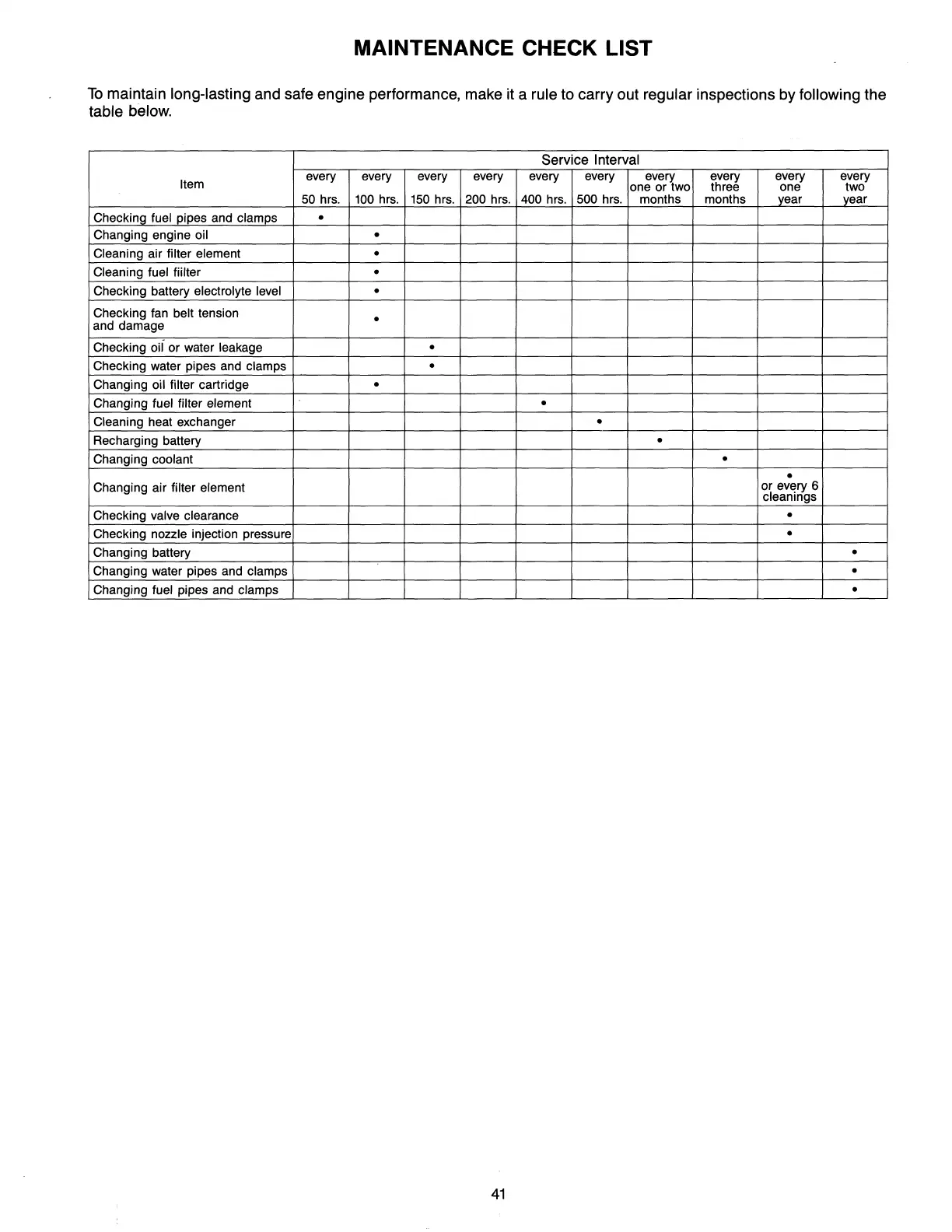 maintain long-lasting and safe engine performance, make it a rule to carry out regular inspections by following the