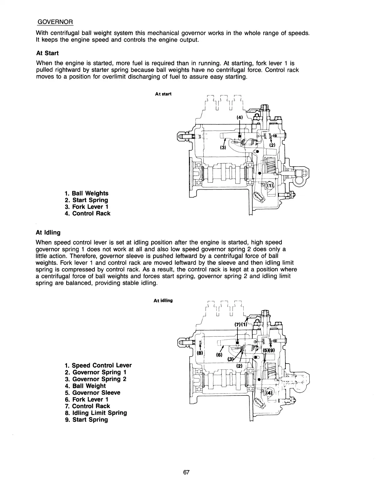 centrifugal force of ball weights and forces start spring, governor spring 2 and idling limit
