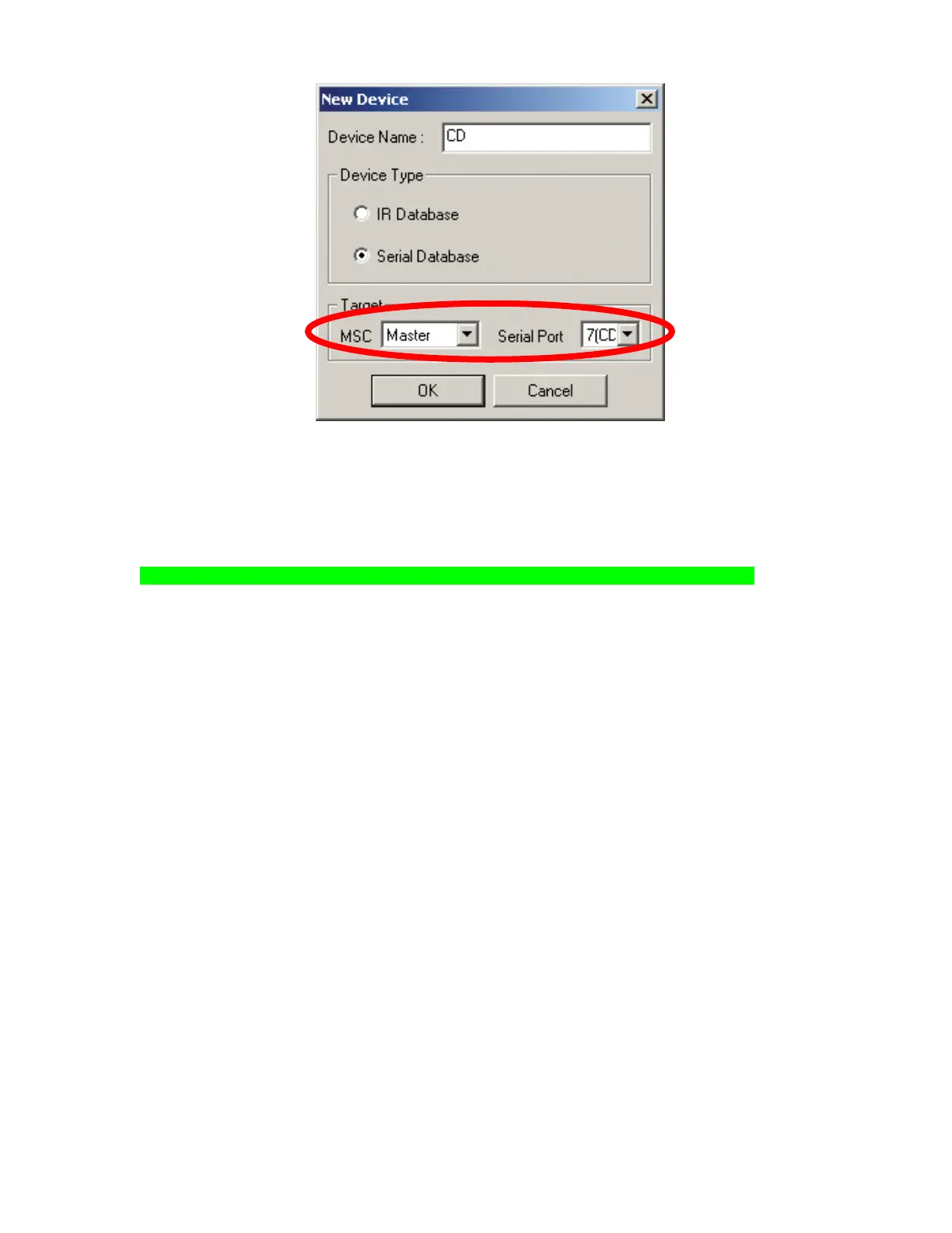 5. In the Target Block, select MSC MASTER or SLAVE and SERIAL PORT 7-12 as appropriate.