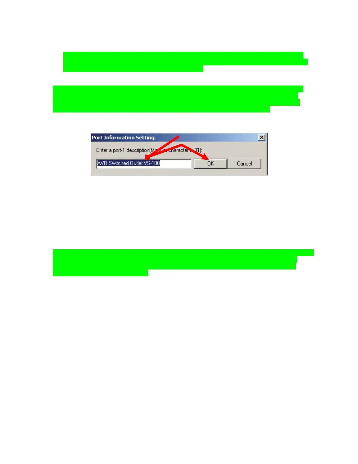 blue highlight. The PORT INFORMATION SETTING WINDOW will appear. Type the name of the