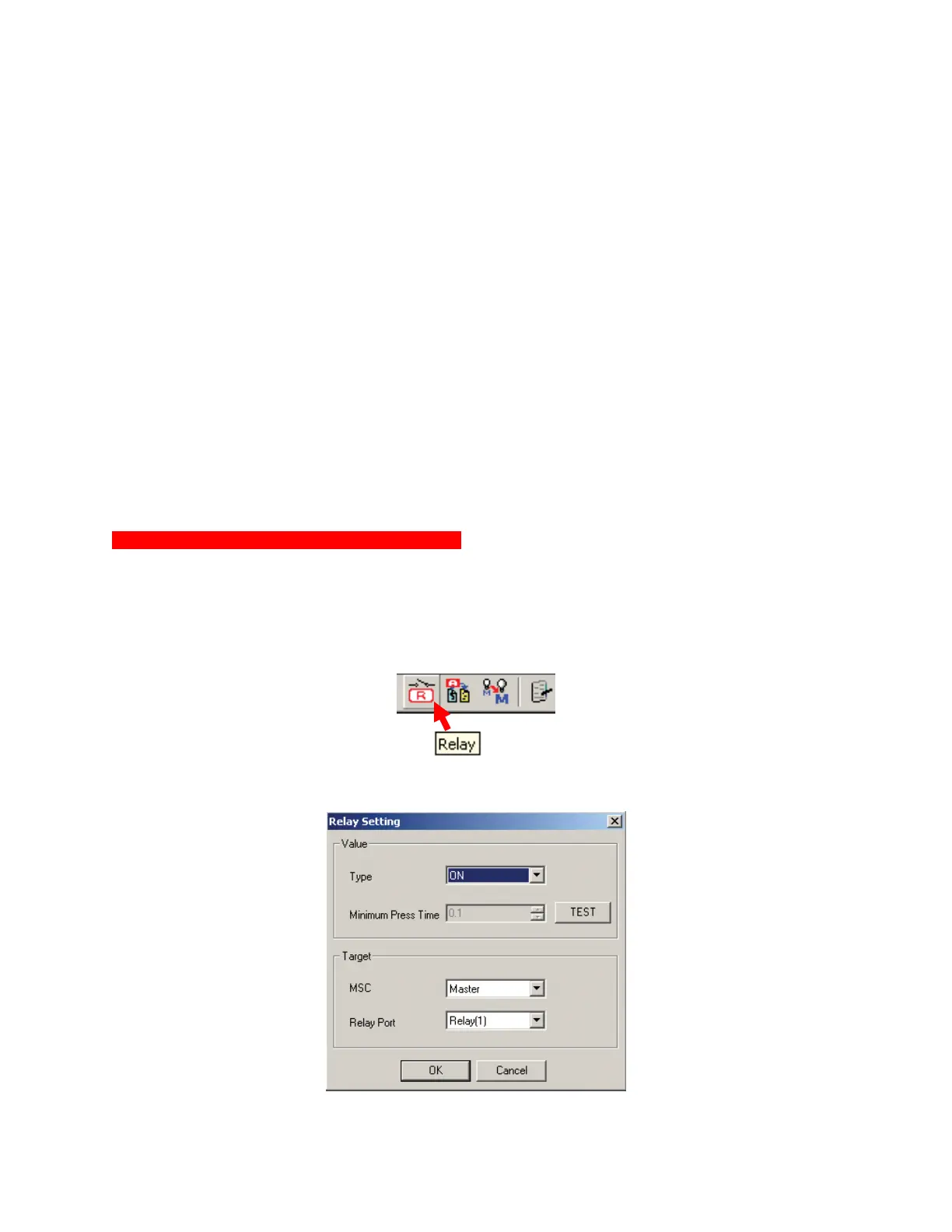 a. The RELAY SETTING WINDOW will appear. Relay Setting ON