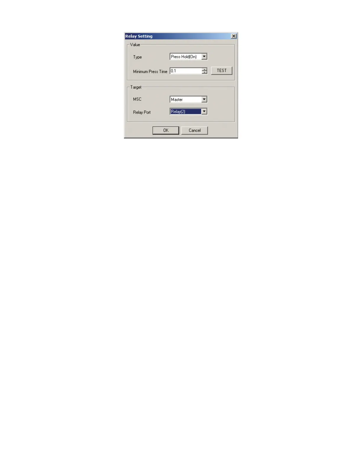 Press & Hold Relay Setting Window