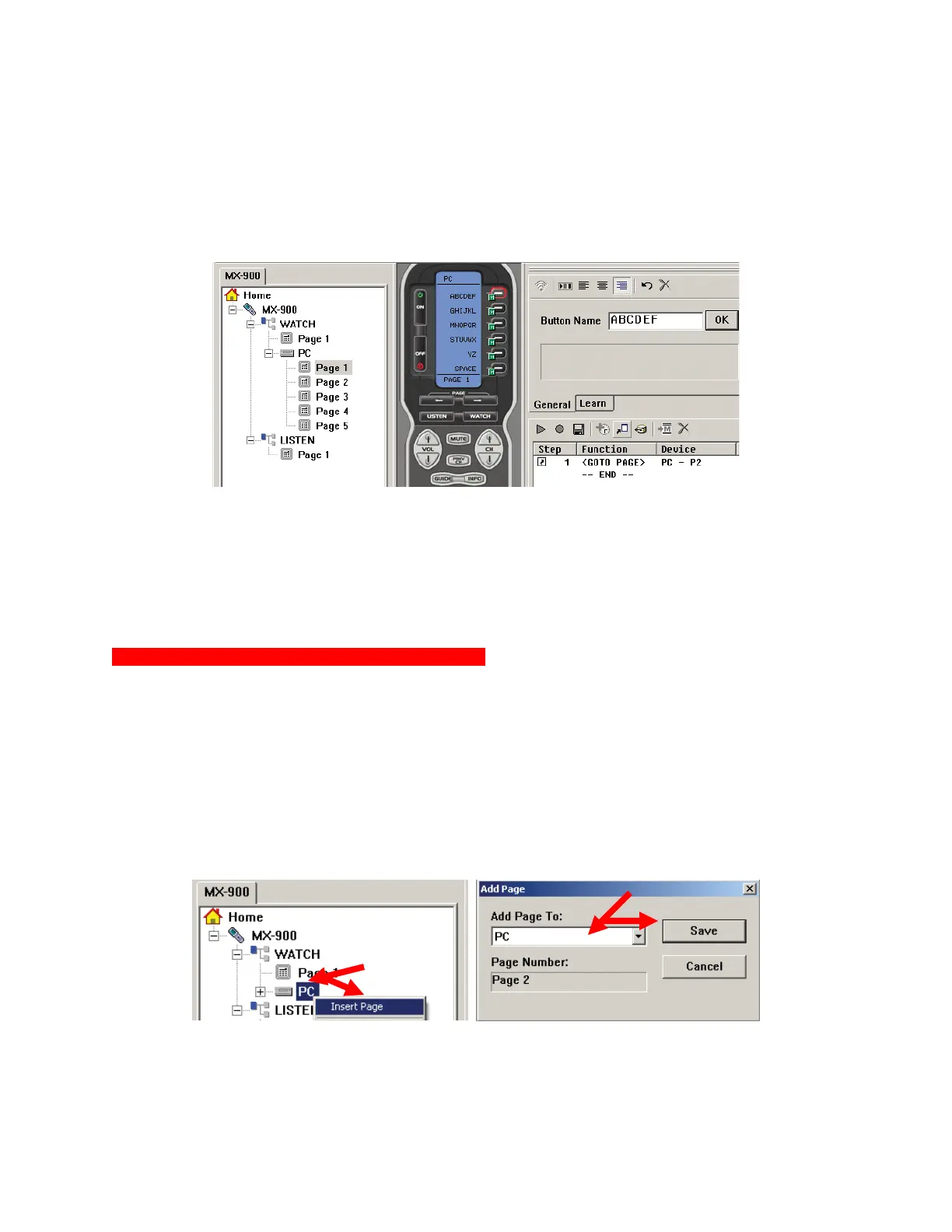 6. In the ADD PAGE TO BOX, select PC using the PULL-DOWN. The PAGE NUMBER will default to