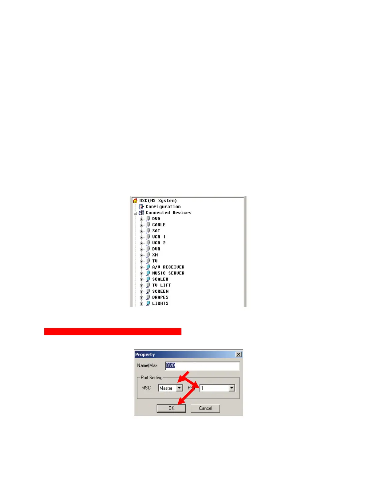 2. In the PORT SETTING BLOCK, set MSC to MASTER. Set PORT to 1. Click OK.