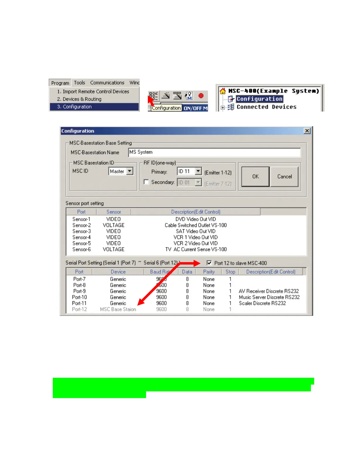 8. Within the Serial Port Setting page, select (check mark) the PORT 12 TO SLAVE MSC-400 BOX. The