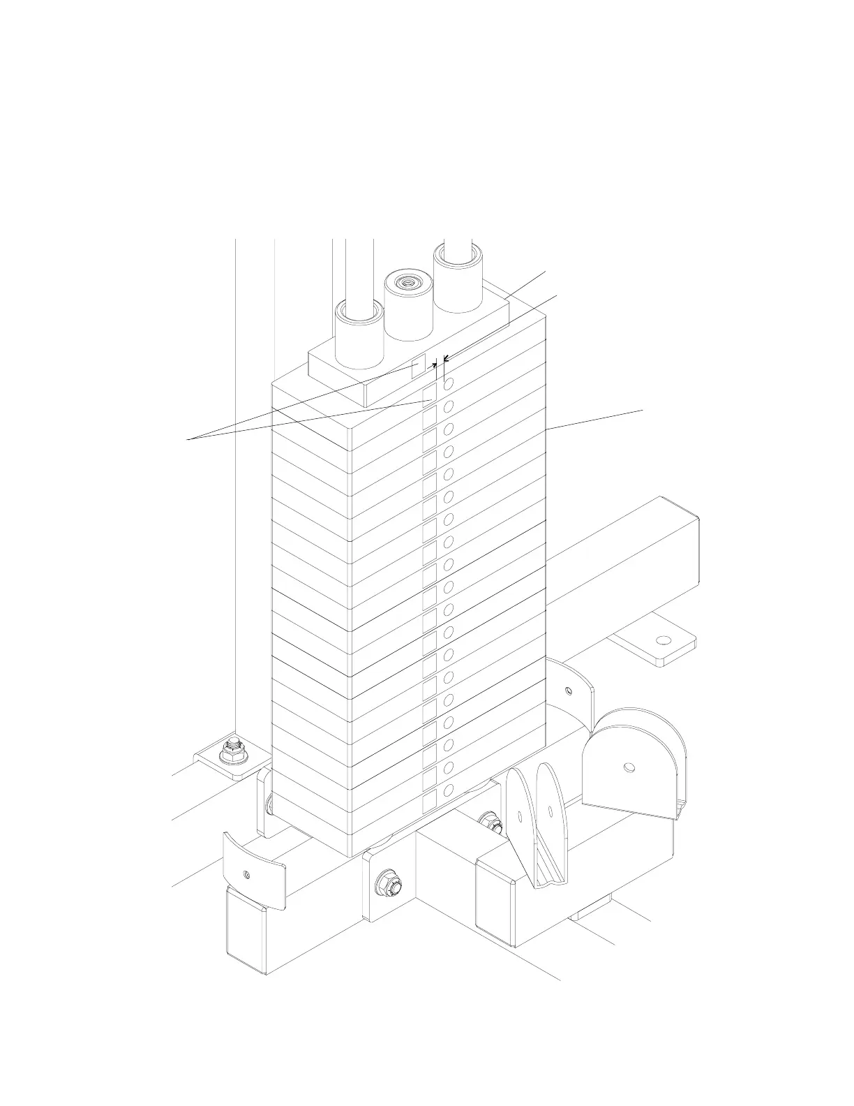 Continue appling WEIGHT LABELS “3” through “19” to WEIGHT PLATES (38) 1/2” to left of hole as shown.