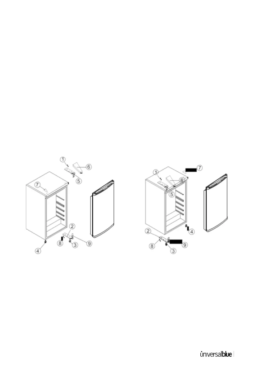 • Antes de introducir la bisagra inferior (2) retire el taco (9) e