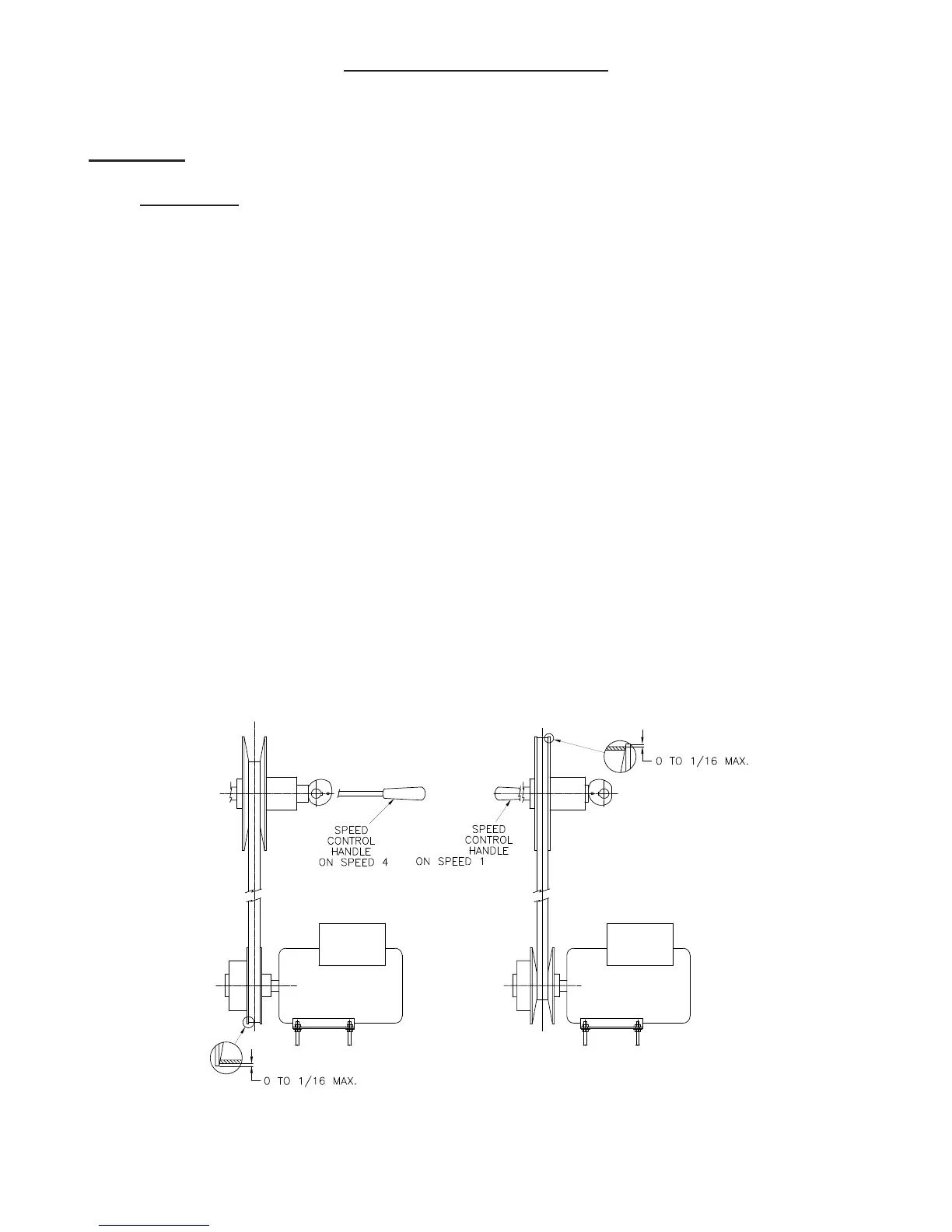 7. Check the position of the belt on the lower vari-speed pulley. The belt should be flush to 1/16