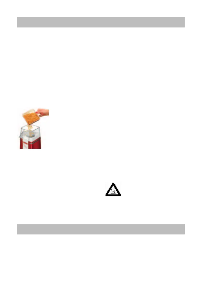Maksymalna ilość na jeden wsad wynosi 100 g ziaren kukurydzy. Nie przepełniać urządzenia, gdyż