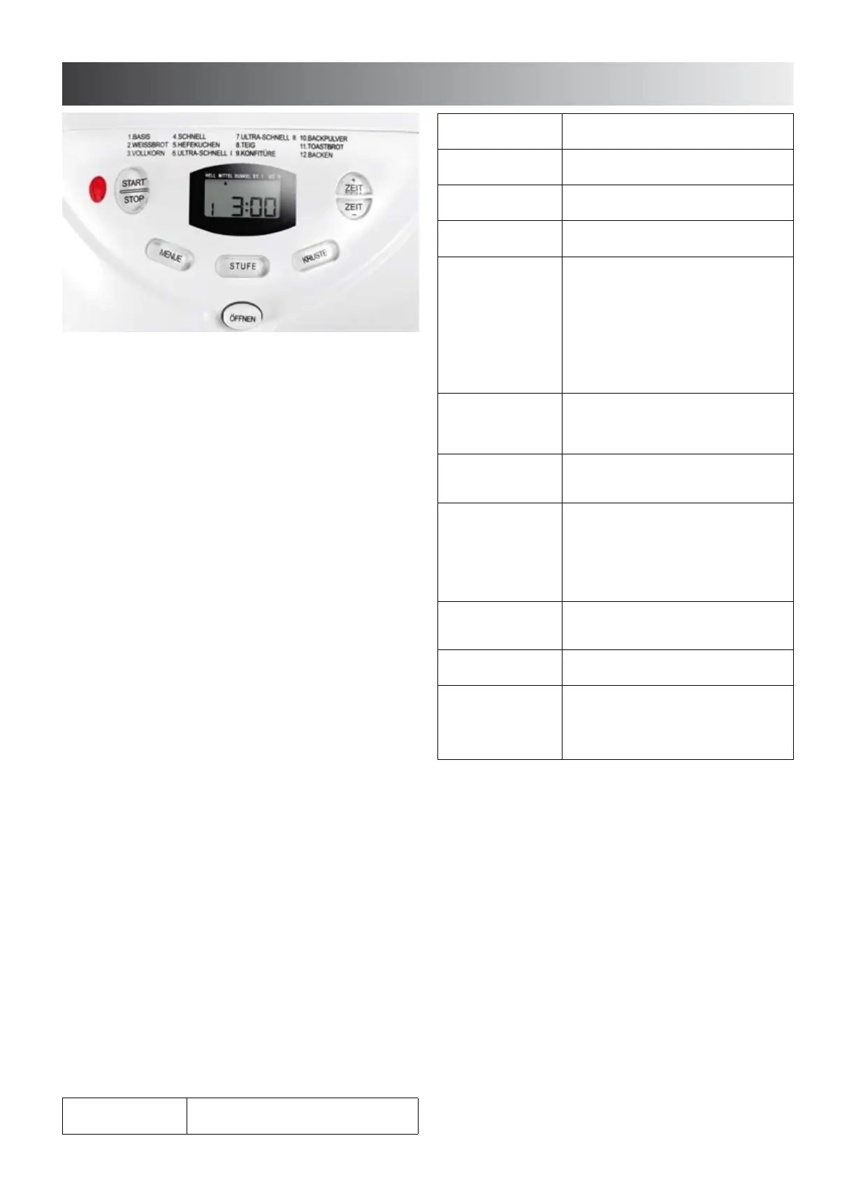 KUCHEN, TOASTBROT and BACKPULVER) several beeps during