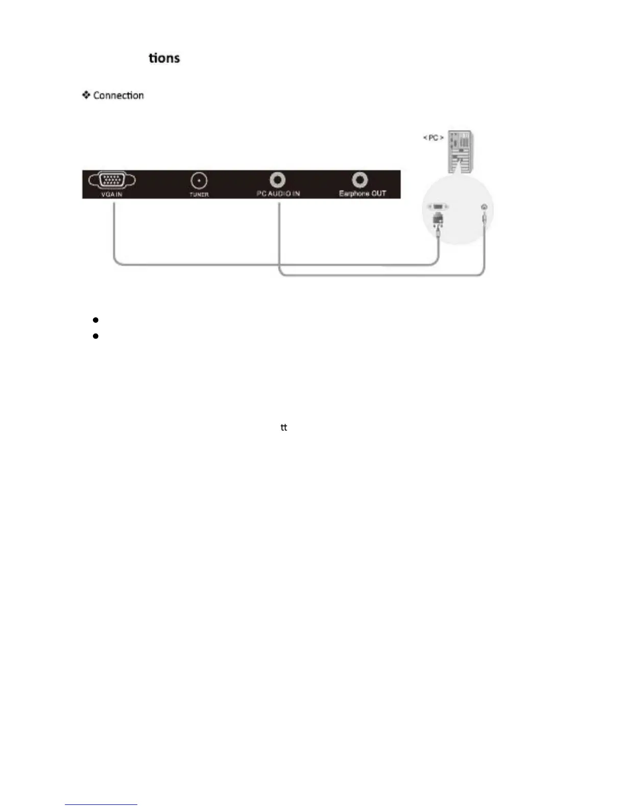 Connect LCD TV’s PC Audio terminal to PC’s Audio terminal using the Audio cable.