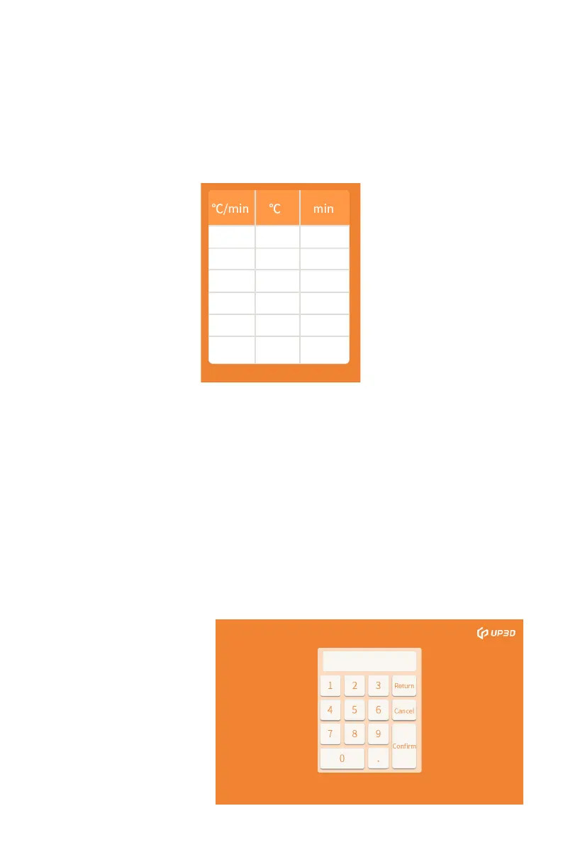 The white boxes in the parameter setting areas of heating,