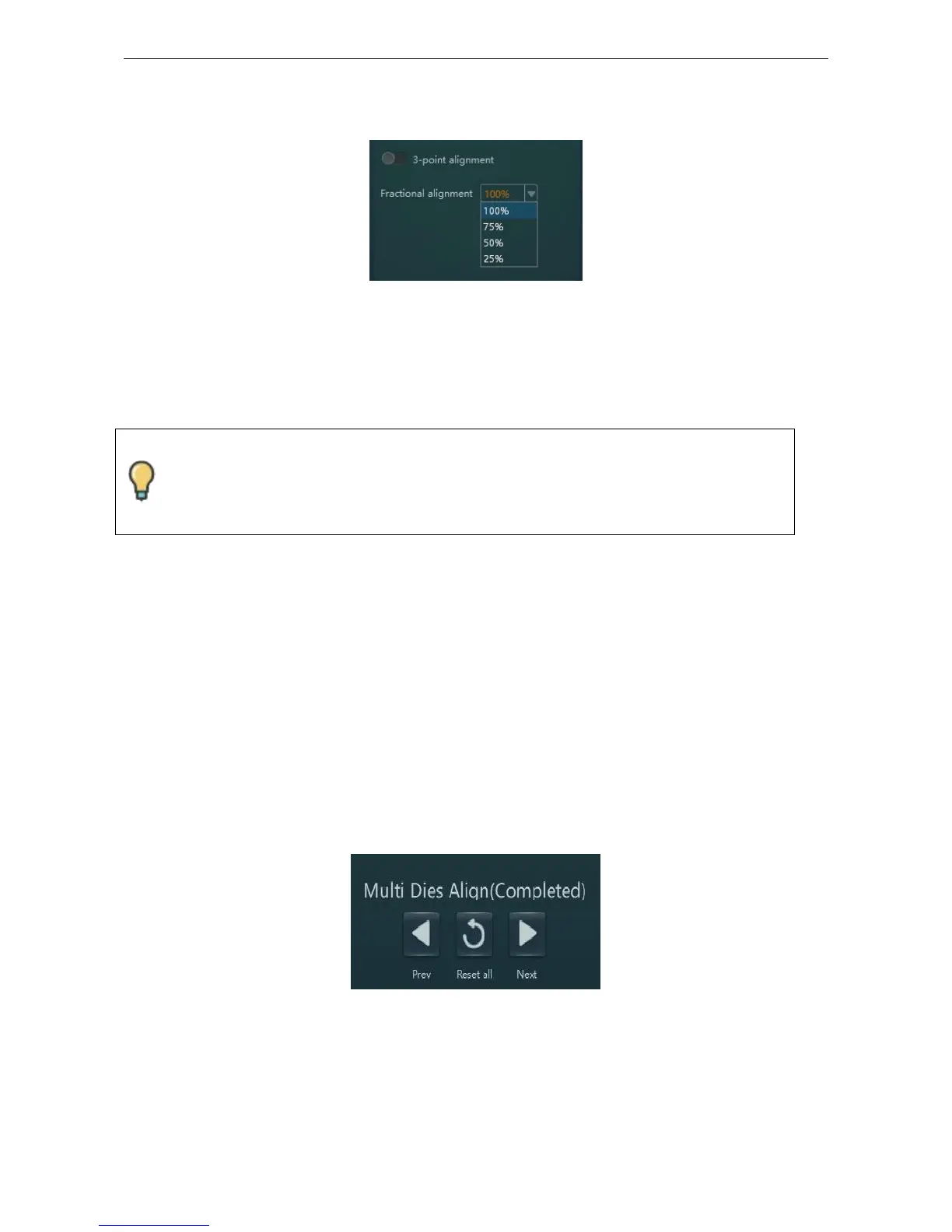 A3. You can do a one-point alignment or a 3-point alignment by selecting the percentage in the