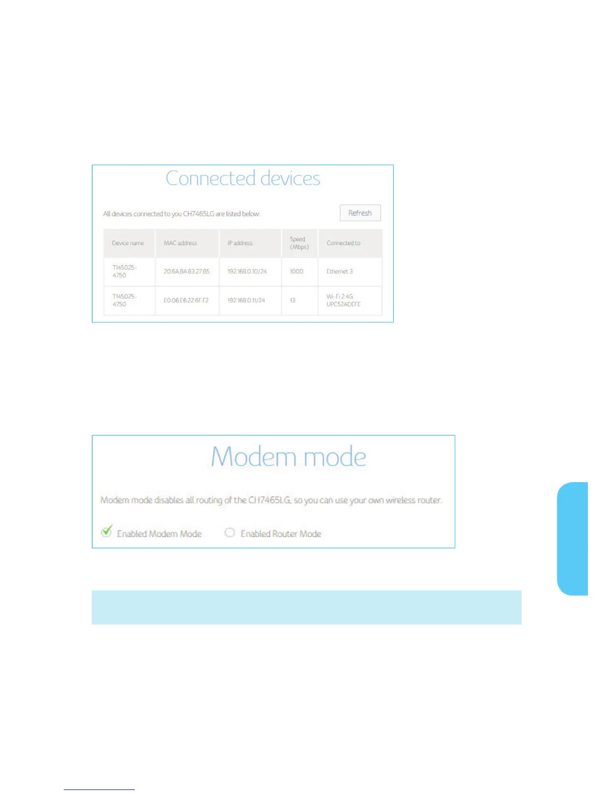 UPC Cablecom Connect Box - Connected Devices; Modem Mode