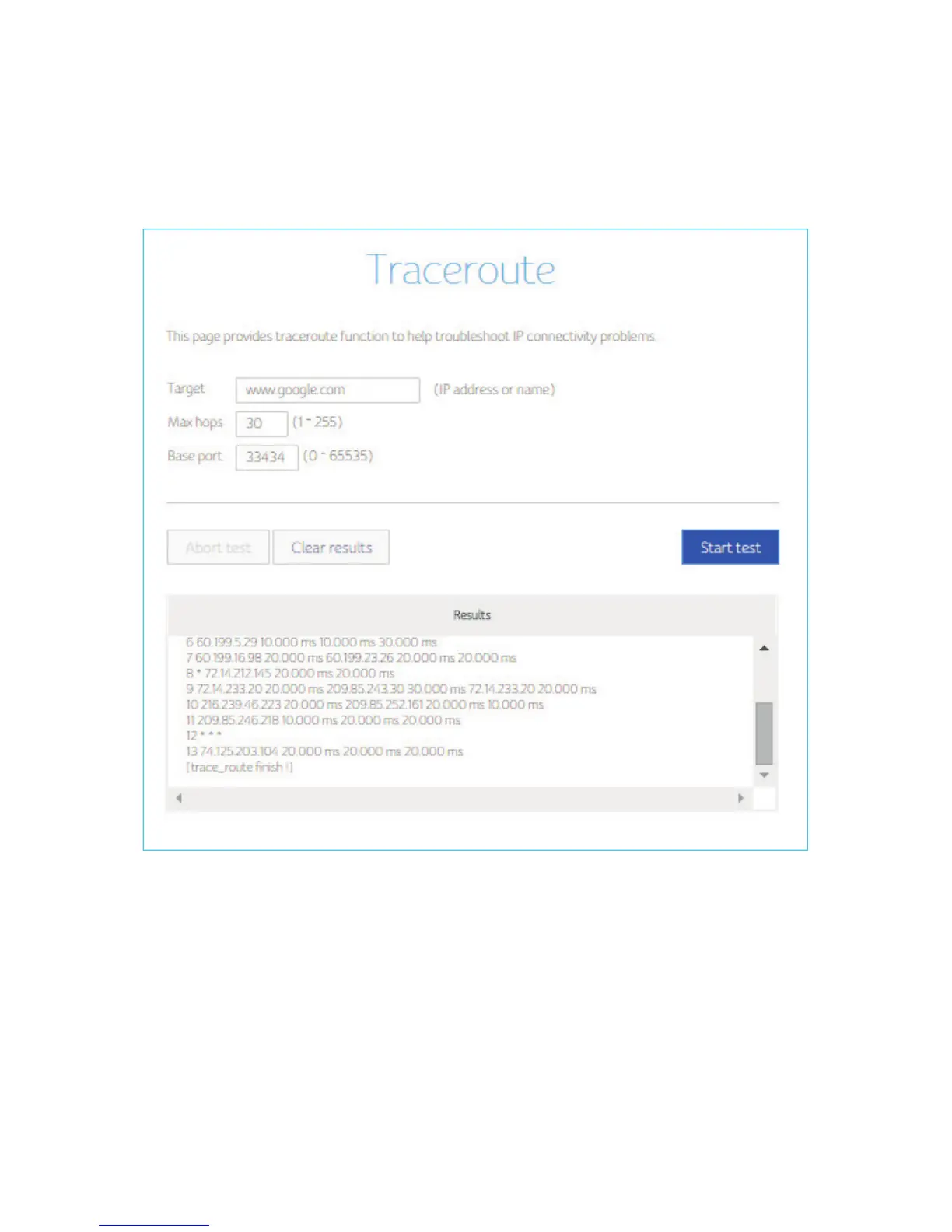 Traceroute allows you to map the network path from the cable modem to a public host.