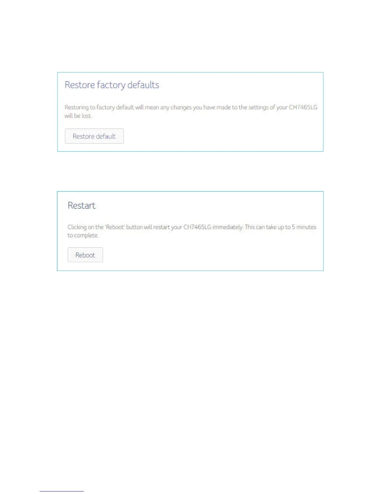 Click Restore default button to return to your Connect Box to its factory default settings.