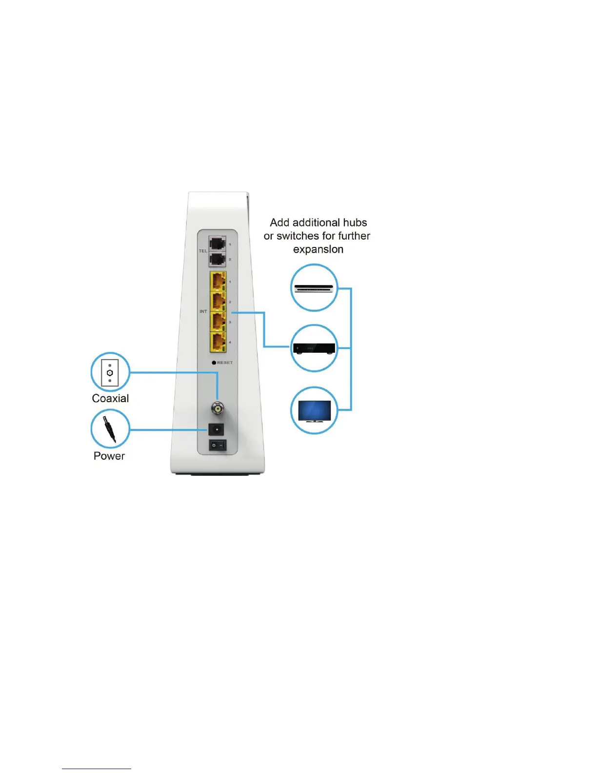 Connect a hub or switch to any Ethernet port on the Connect Box.