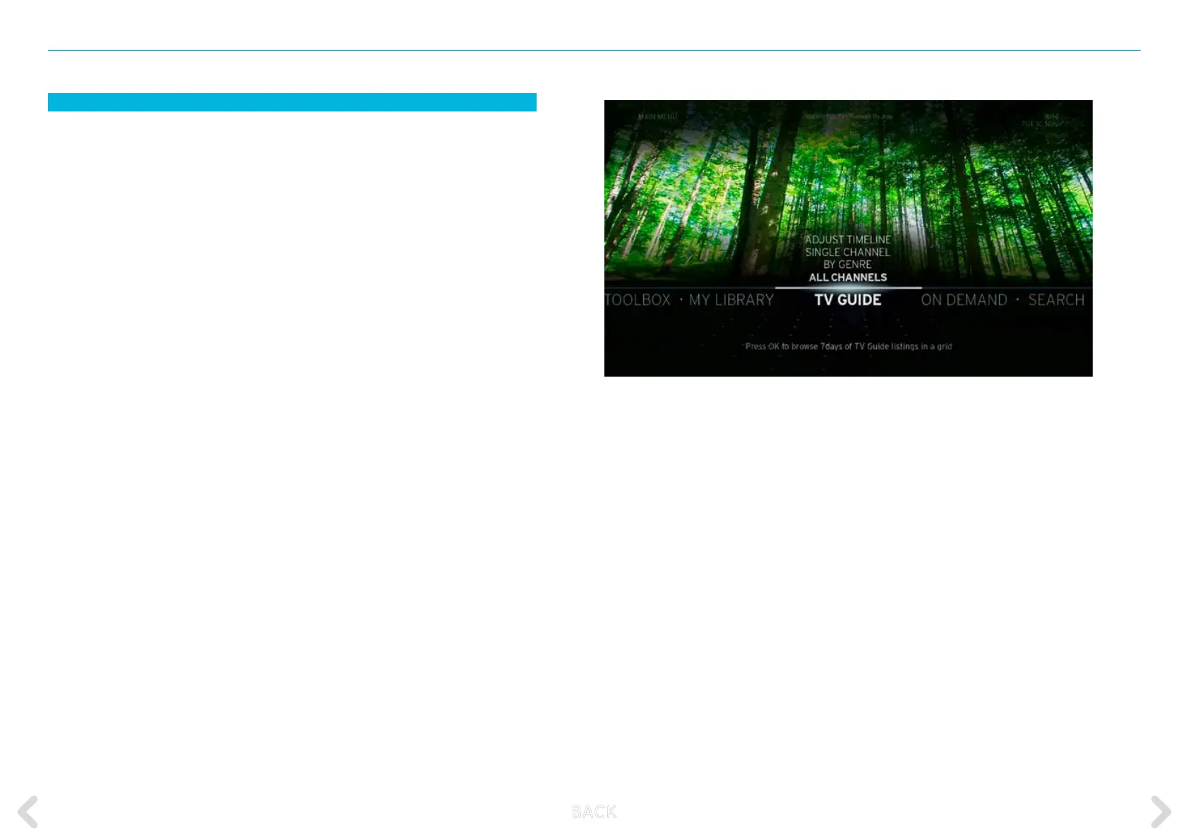 CHANNELS, TV GUIDE, SUGGESTED, SEARCH, TOOLBOX, ON DEMAND