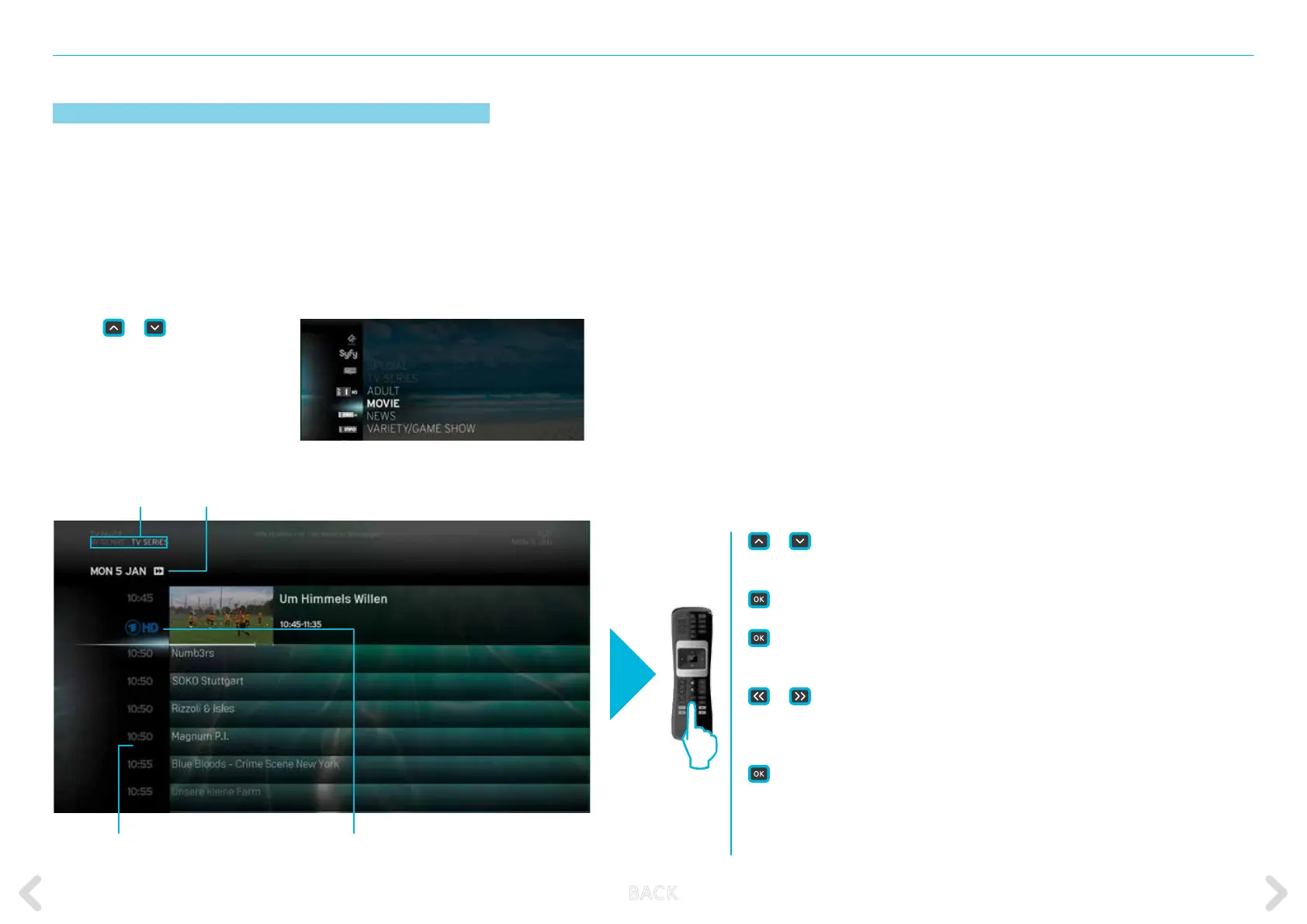 BACK – returns to the TV GUIDE home screen.