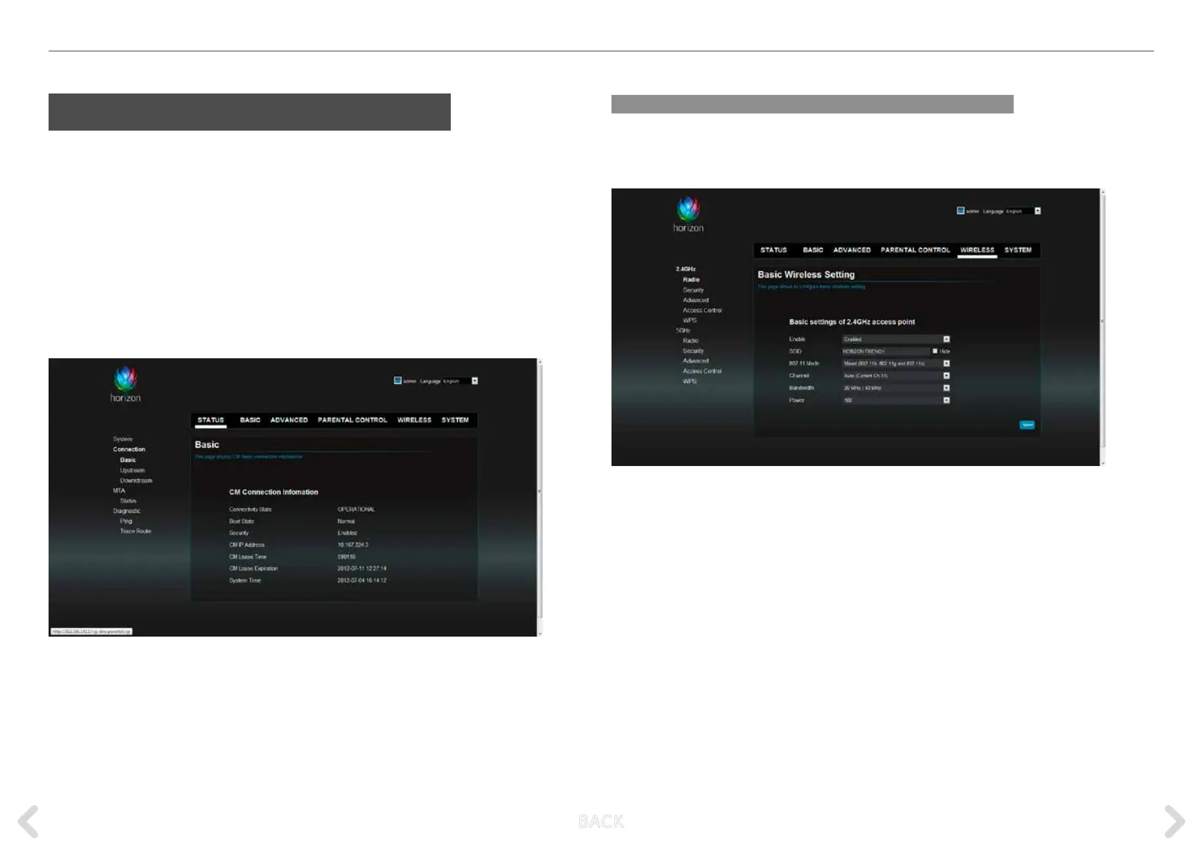 the Web Admin interface of the Horizon router: