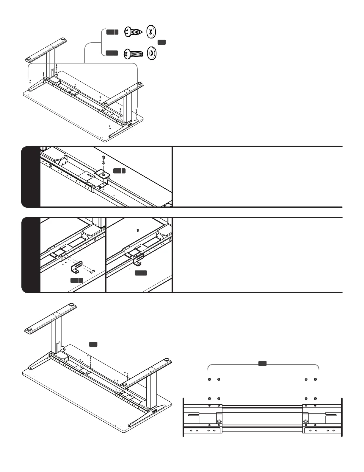 Secure the Center rails at both ends using eight (8)