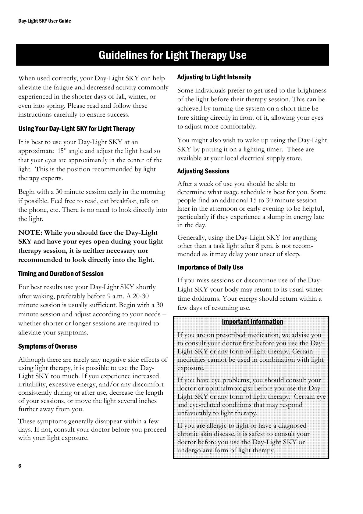 doctor before you use the Day-Light SKY or