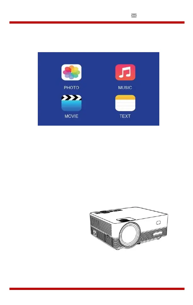 projectorscherm staat en pas de focus aan door op knop 2 te drukken.