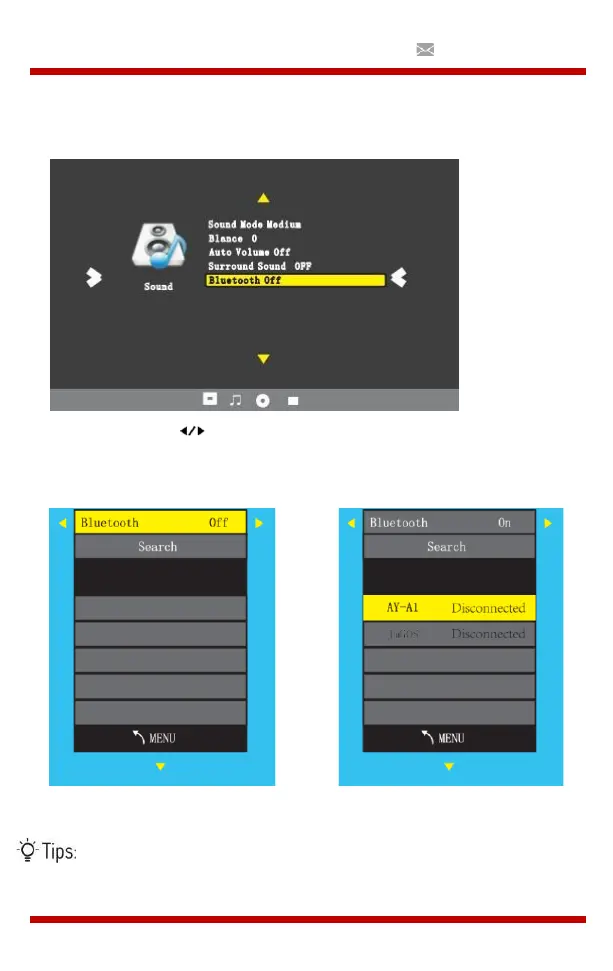 2. Druk op de “ " toets om Bluetooth in te schakelen.