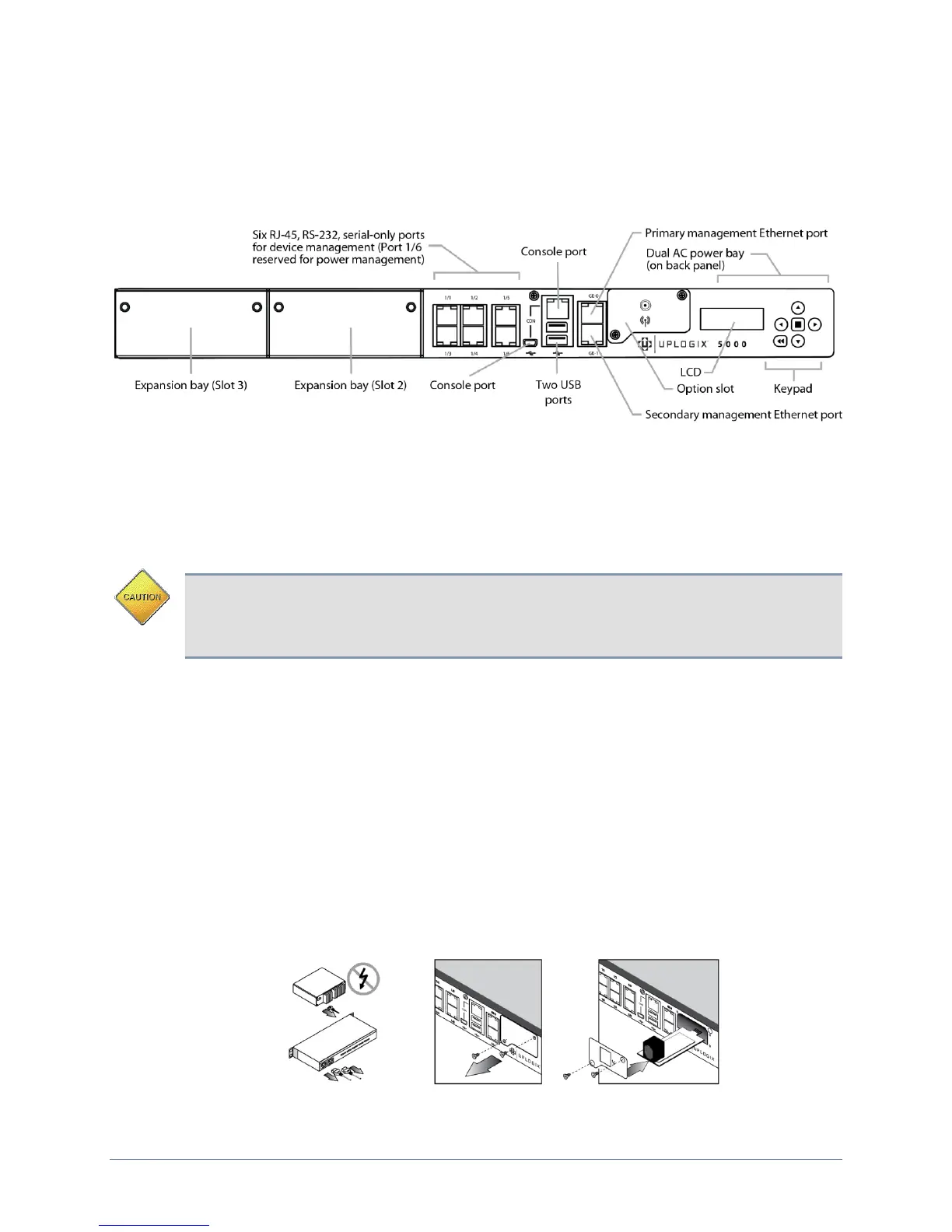 The Uplogix 5000 supports field-installable modems, small form factor pluggable (SFP)