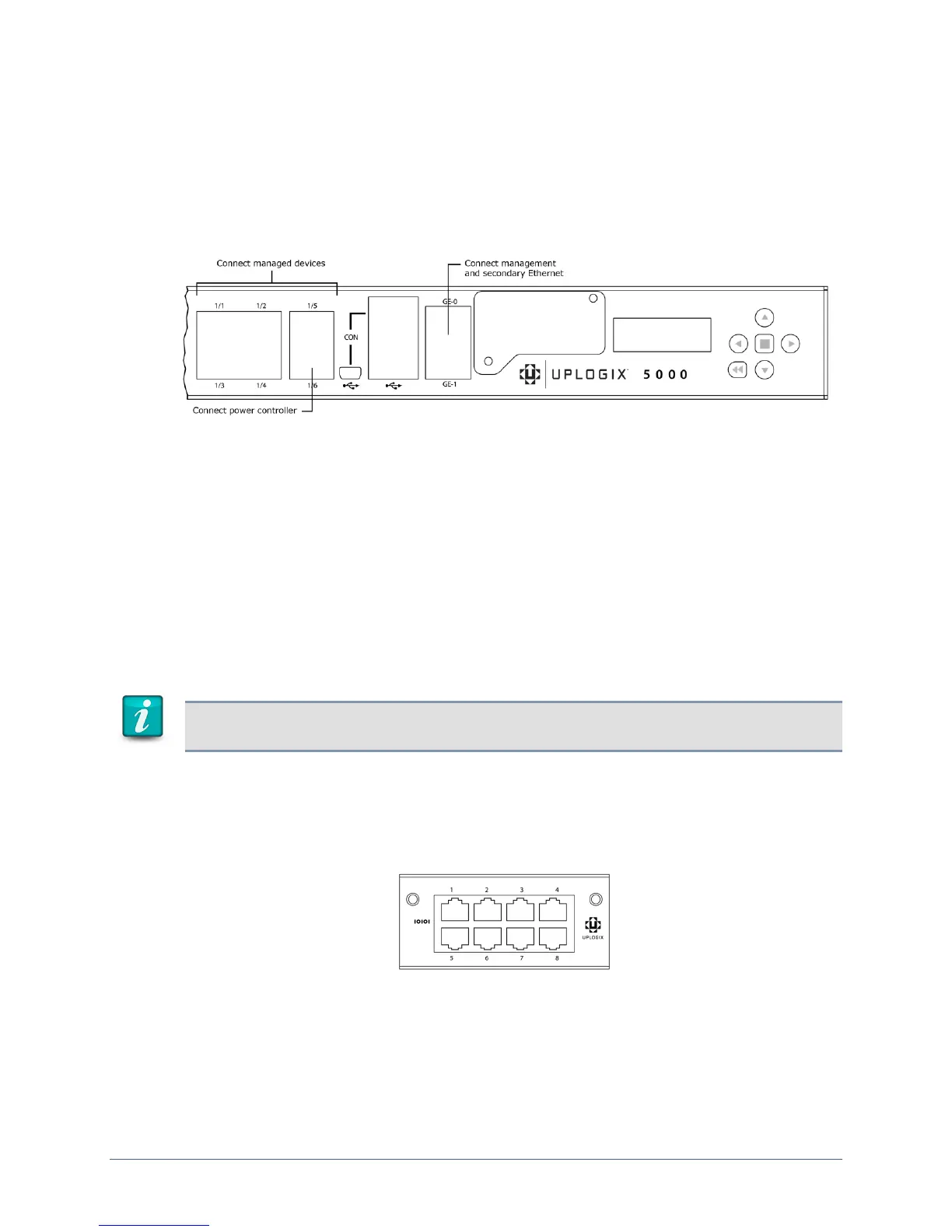 Note: Ensure that RJ45 or RJ11 connectors used to connect devices to the Uplogix have a