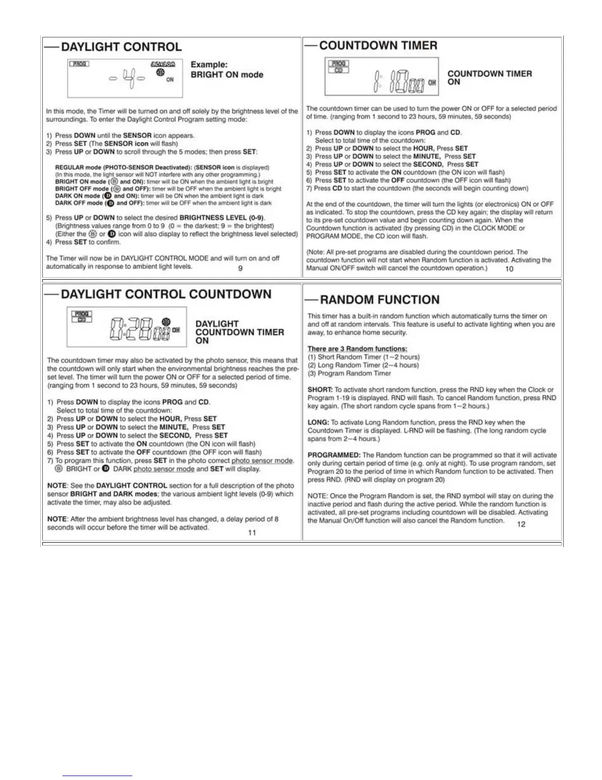 UPM ET525 - Advanced Timer Modes; Daylight Control; Daylight Control Countdown; Random Function for Security